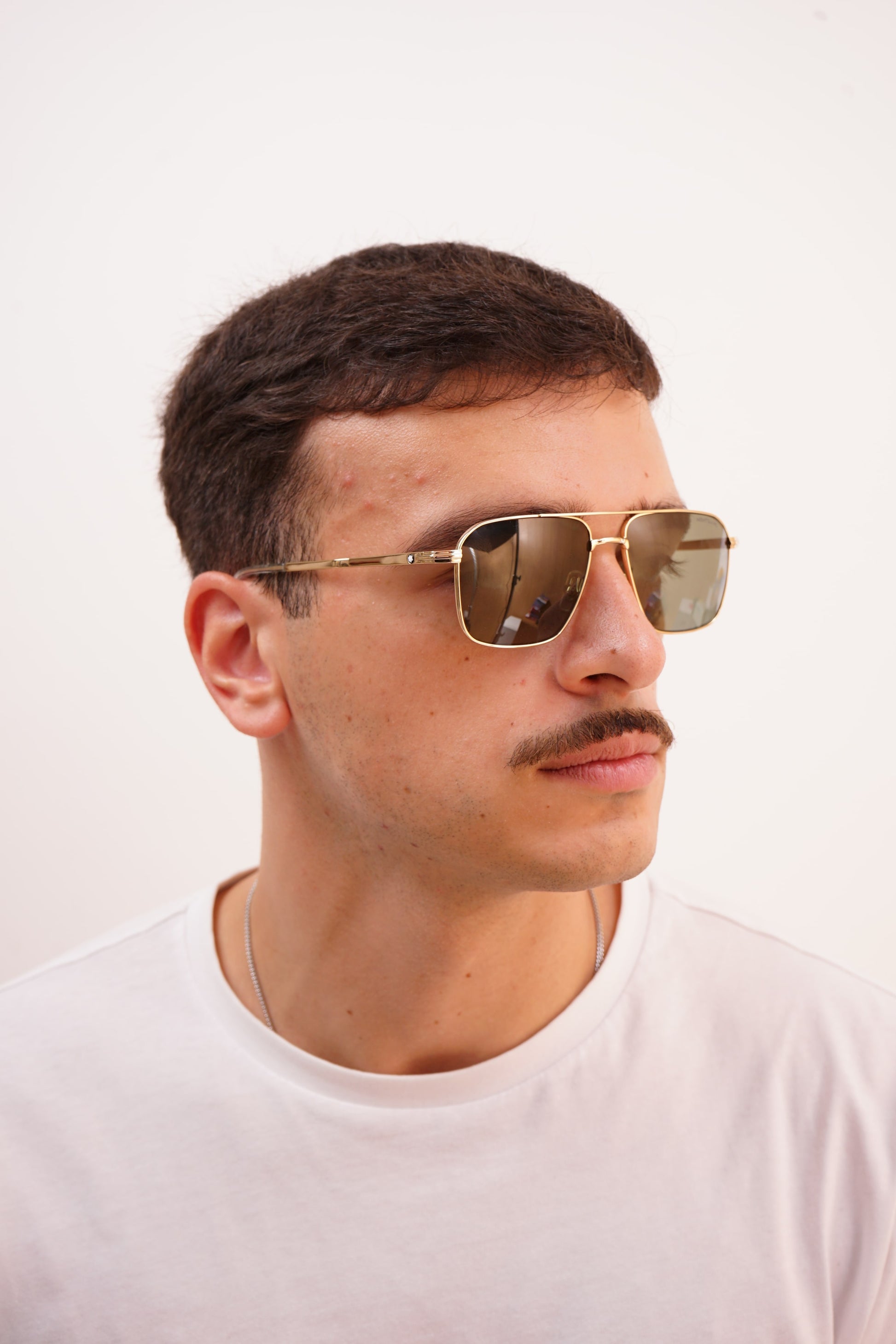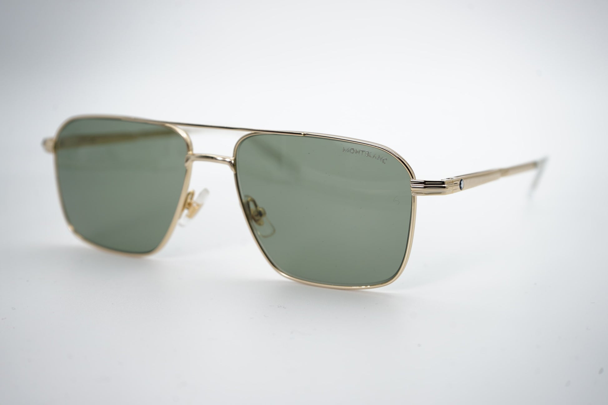 Os óculos de sol Montblanc 0278S 002 apresentam uma estrutura metálica dourada com linhas geométricas refinadas e um acabamento polido de grande precisão. As lentes verdes asseguram proteção UV total e conforto visual, mantendo um estilo clássico e distinto. As hastes finas, com o emblema Montblanc na lateral, reforçam o caráter sofisticado da marca. Uma escolha elegante e intemporal para quem valoriza qualidade e distinção.