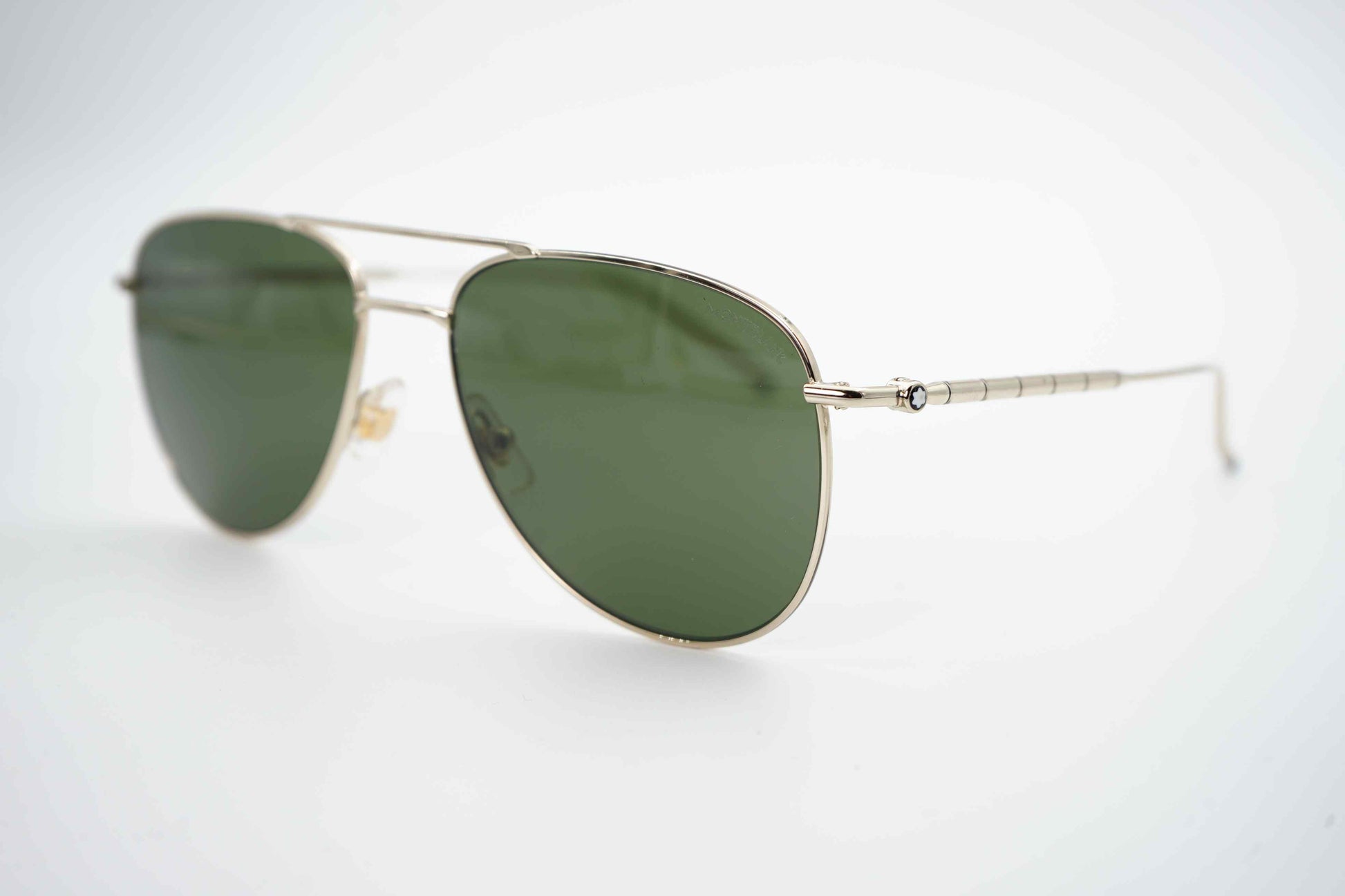 Os óculos de sol Montblanc 0311S 002 reinterpretam o estilo aviador clássico com um toque contemporâneo. A armação metálica dourada, leve e refinada, combina-se com lentes verdes que asseguram proteção UV total e uma visão natural e confortável. As hastes finas exibem o emblema Montblanc, símbolo de requinte e precisão. Uma escolha elegante para quem aprecia design intemporal e qualidade superior.