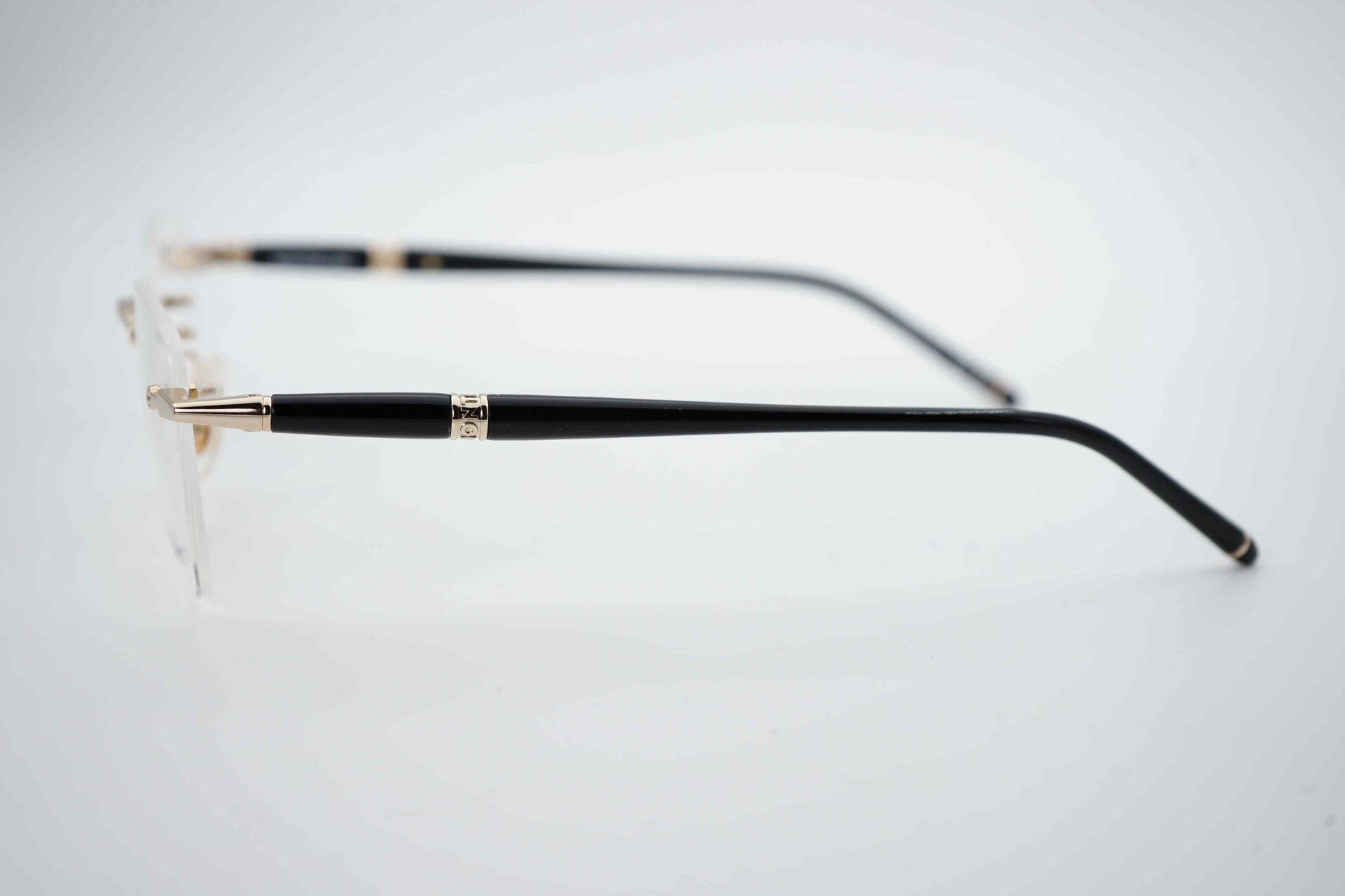 Os óculos Montblanc 0346O 001 refletem o requinte clássico da marca através de um design sem aro em titânio dourado. As hastes negras com detalhe metálico reforçam a estética sofisticada, oferecendo leveza, conforto e durabilidade excecionais. Uma escolha elegante e discreta, perfeita para quem procura distinção com o máximo conforto.