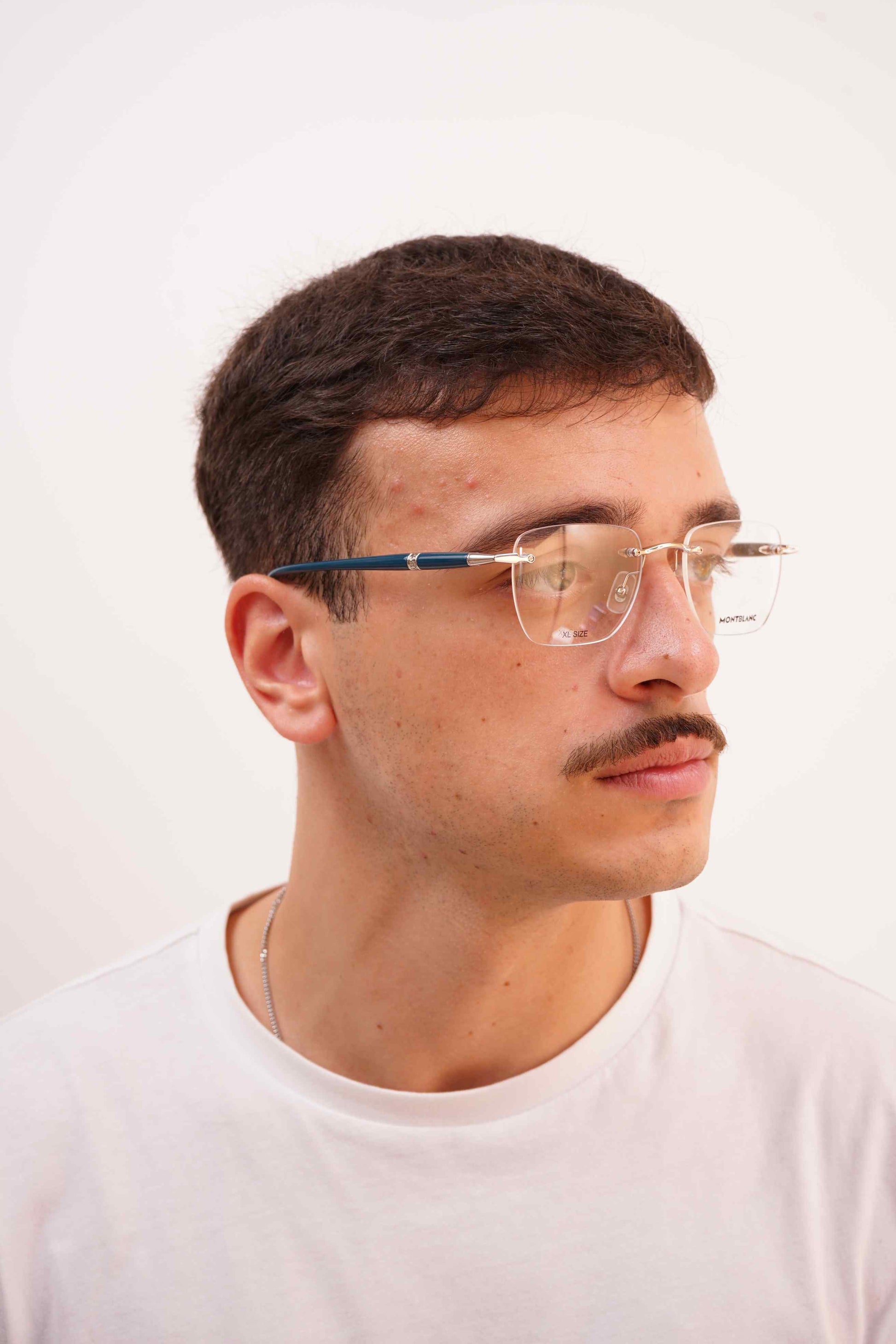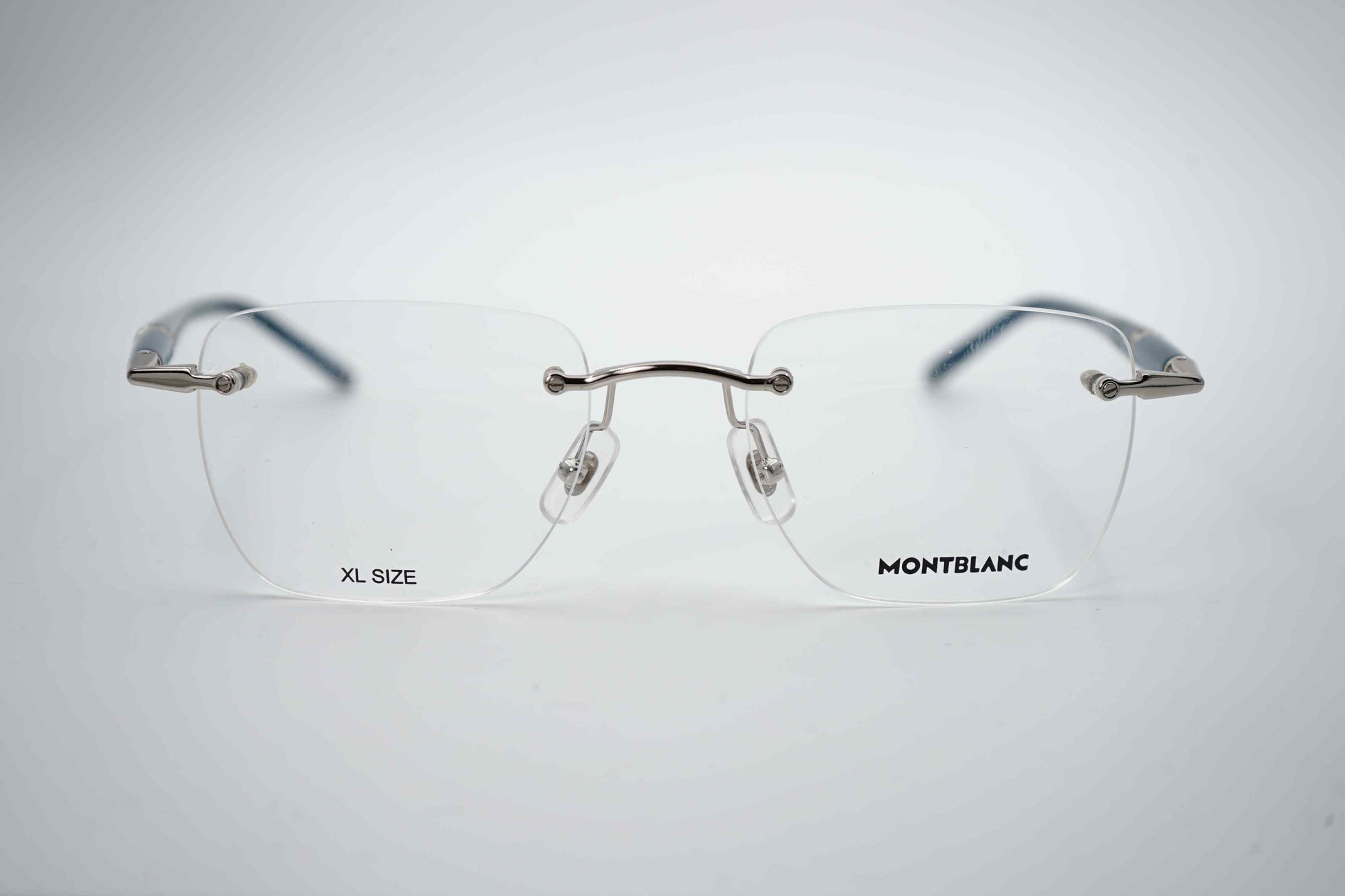 Os óculos Montblanc 0346O 002 combinam sofisticação e leveza num design sem aro em titânio prateado. As hastes azul-escuro com detalhe metálico elevam a estética, oferecendo equilíbrio perfeito entre elegância e conforto. A estrutura ultraleve garante uso prolongado sem pressão, ideal para quem valoriza discrição e qualidade premium.