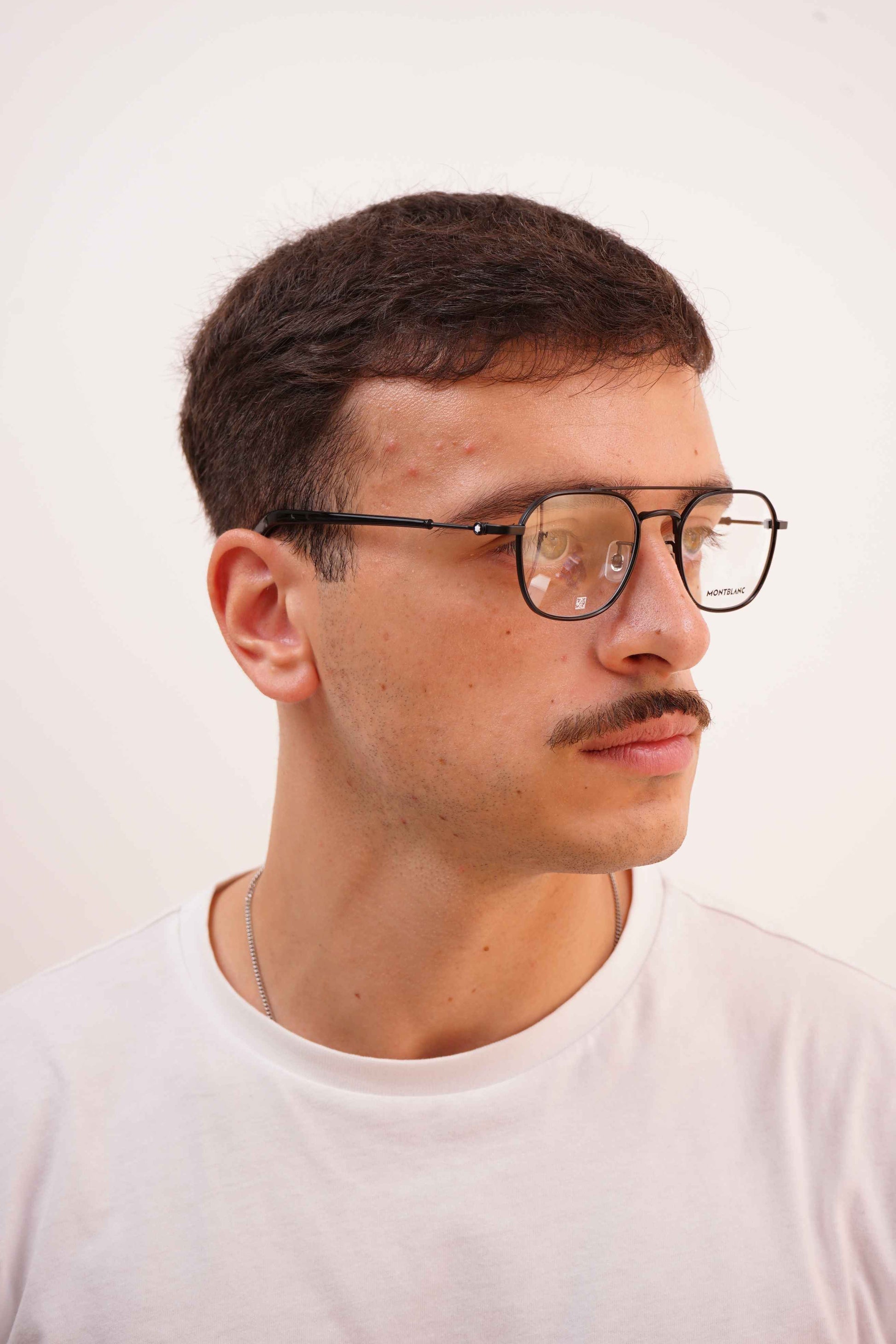 Os óculos Montblanc 0391OA 004 combinam um design aviador contemporâneo com a leveza e resistência do metal preto mate. A ponte dupla confere um caráter moderno e distinto, enquanto as linhas finas e o acabamento elegante mantêm o equilíbrio entre sofisticação e conforto. As hastes com o icónico emblema Montblanc reforçam o prestígio da marca, tornando este modelo ideal para quem procura discrição e estilo refinado.