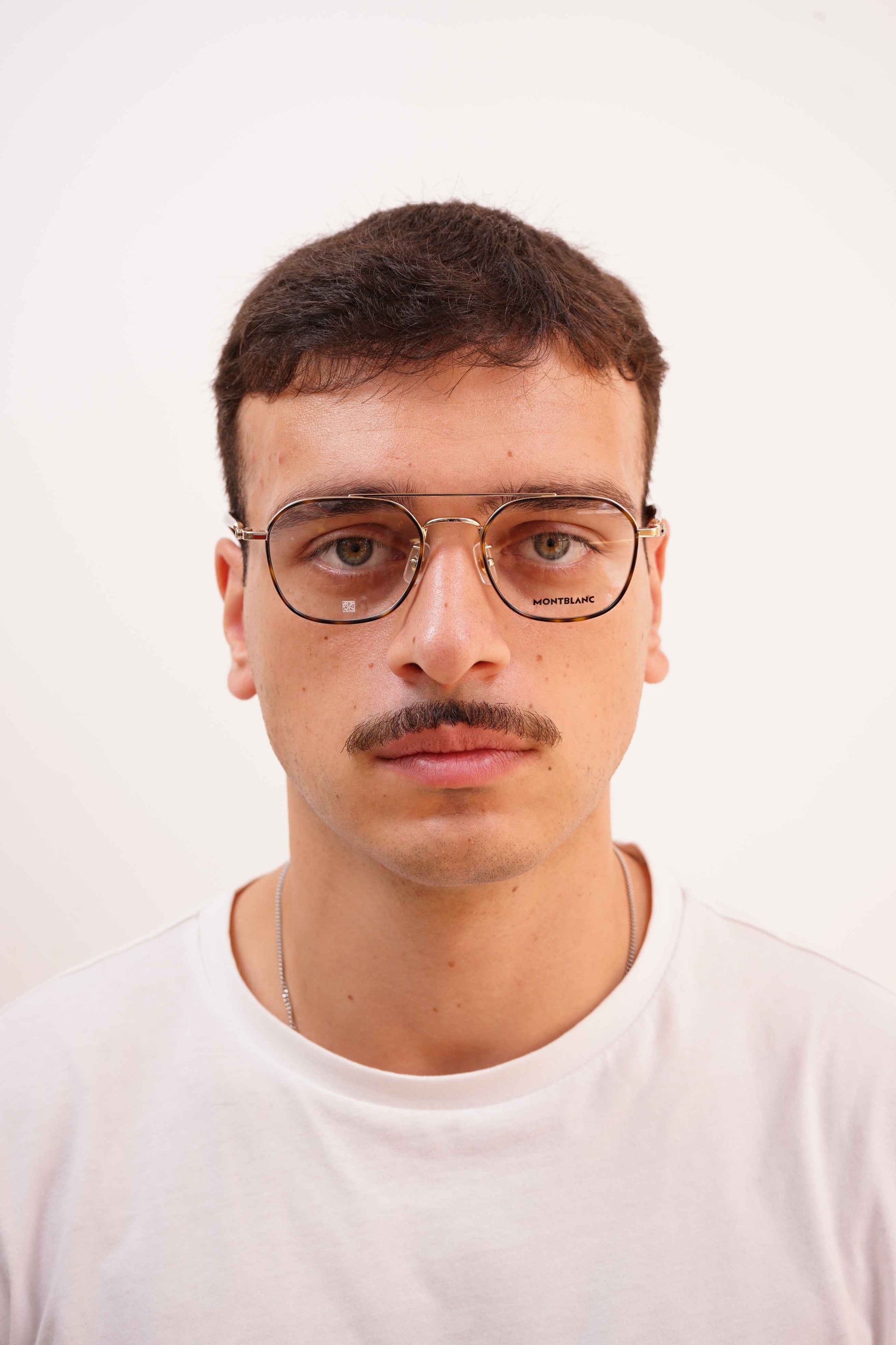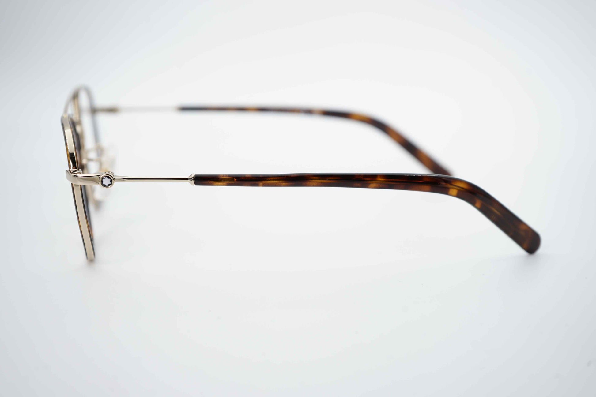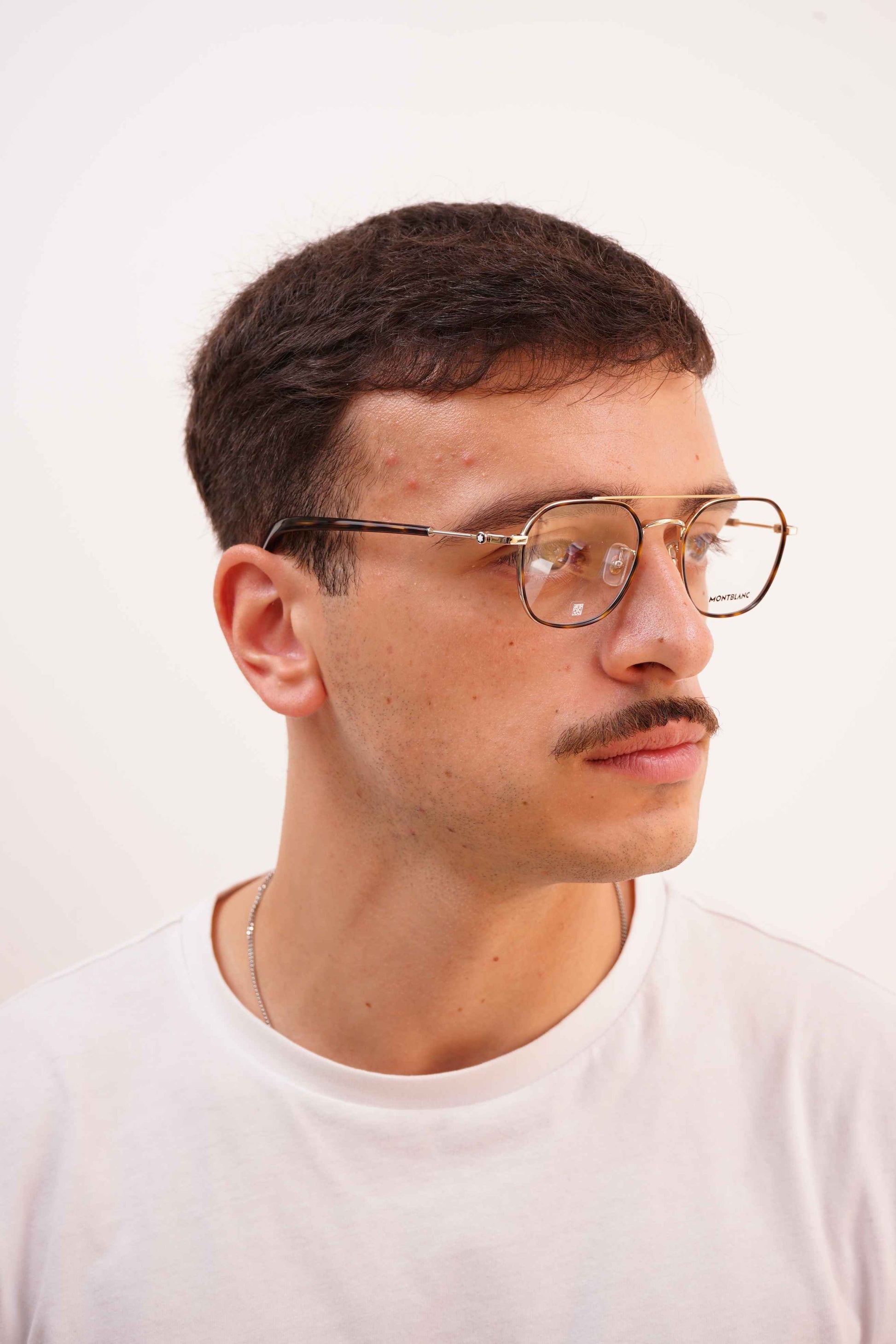 Os óculos Montblanc 0391OA 003 apresentam uma estrutura metálica dourada com detalhe superior em acetato tartaruga, criando um contraste elegante e distinto. O formato aviador clássico recebe aqui uma interpretação contemporânea, com linhas finas e ponte dupla que reforçam a sofisticação do design. As hastes leves, com o icónico emblema Montblanc, asseguram conforto e prestígio em cada detalhe.
