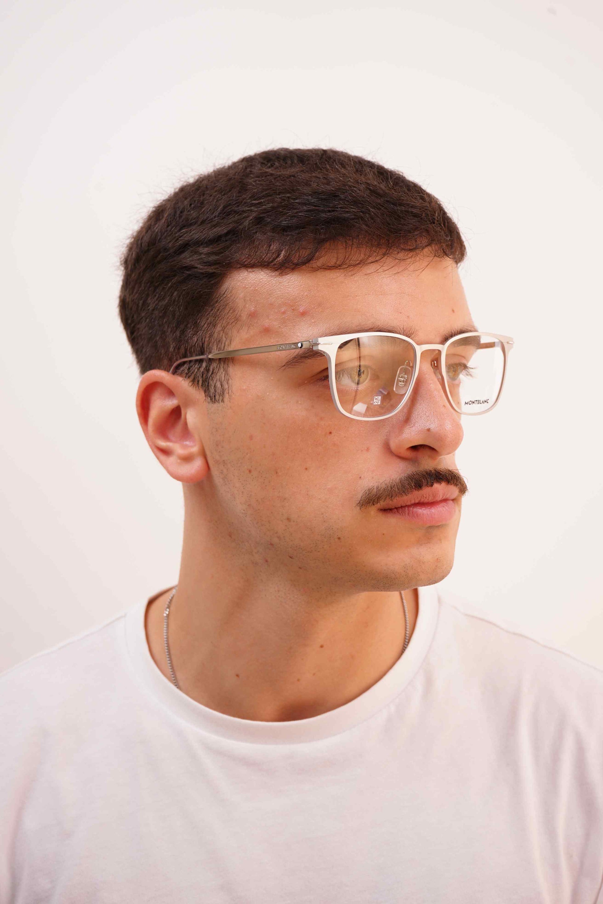 Os óculos Montblanc 0397ON 003 apresentam uma estrutura em metal prateado mate, marcada por linhas finas e precisas. O formato retangular ligeiramente arredondado proporciona uma aparência moderna e equilibrada. As hastes metálicas, com o emblema Montblanc, completam um design que combina leveza, conforto e sofisticação. Uma escolha perfeita para quem valoriza discrição e elegância técnica.