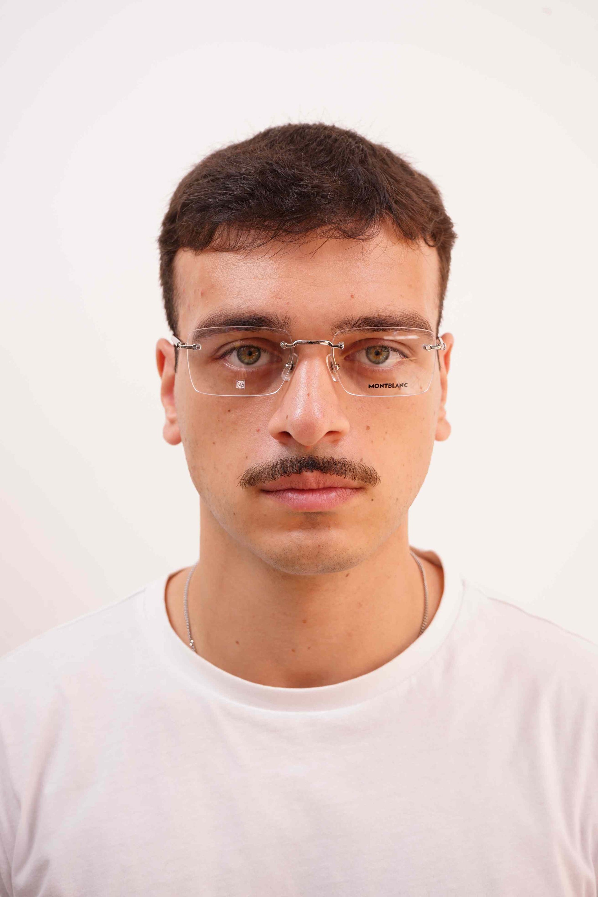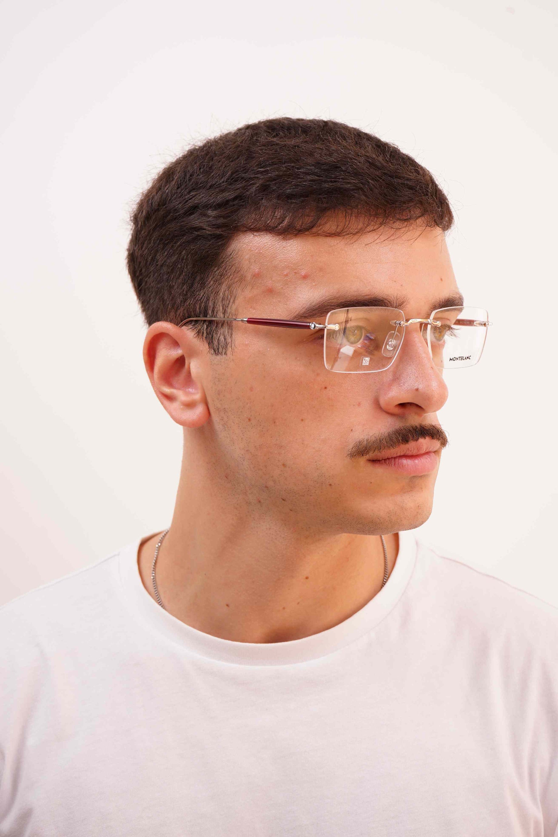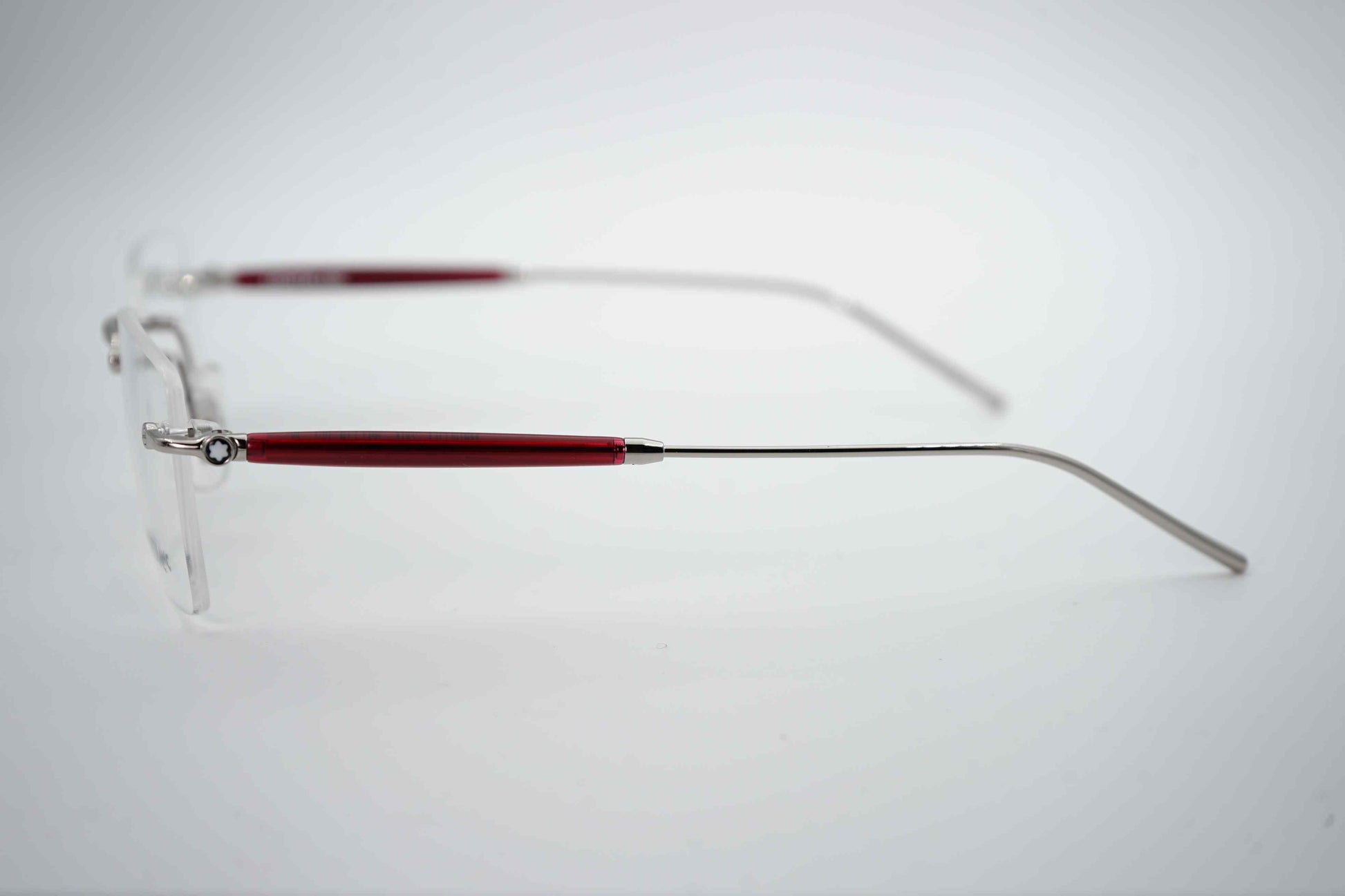 Os óculos Montblanc 0411O 003 apresentam uma estrutura sem aro em metal prateado com hastes em acetato bordô, uma combinação subtil e distinta. O formato retangular e o design ultraleve oferecem conforto excecional e um toque de sofisticação moderna. Ideal para quem procura discrição com um detalhe de cor elegante, fiel ao prestígio da Montblanc.