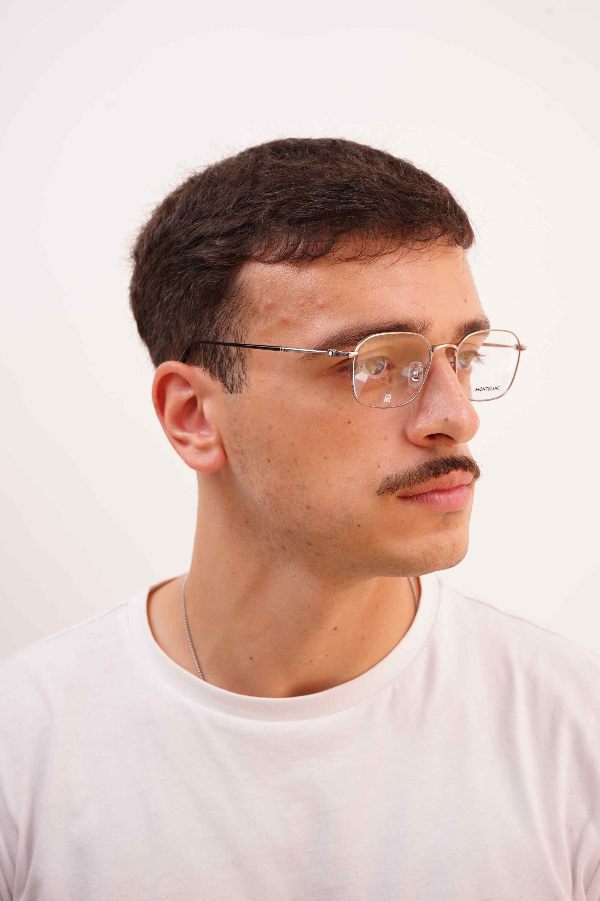 Montblanc 0414OA 003 apresenta uma estrutura totalmente em metal com acabamento em cinzento escuro, conferindo um visual técnico, leve e minimalista. O formato retangular arredondado garante conforto visual e adapta-se facilmente a um estilo profissional e discreto. As hastes finas, com detalhe Montblanc na articulação, reforçam a precisão e a elegância que caracterizam a marca. Uma opção sólida para quem procura leveza, durabilidade e sofisticação diária.