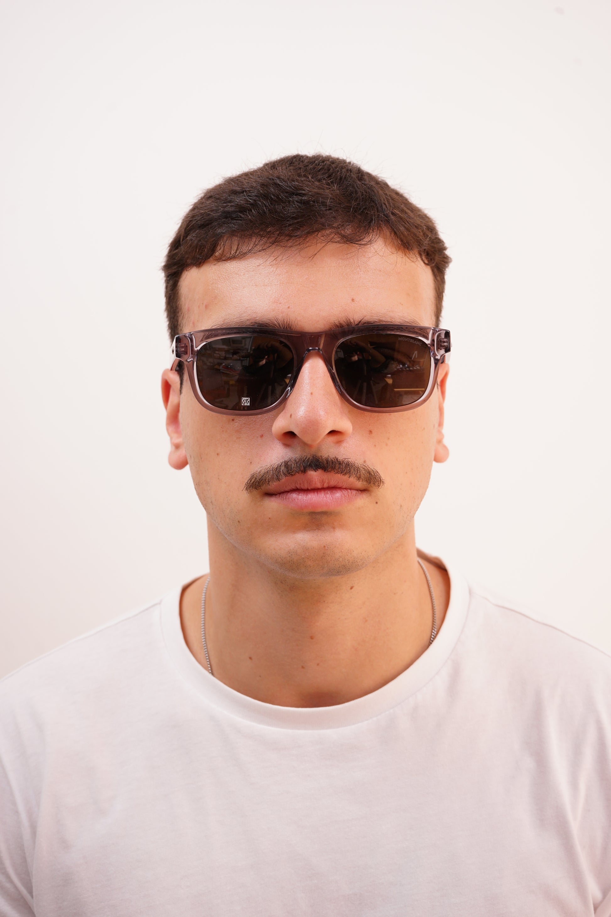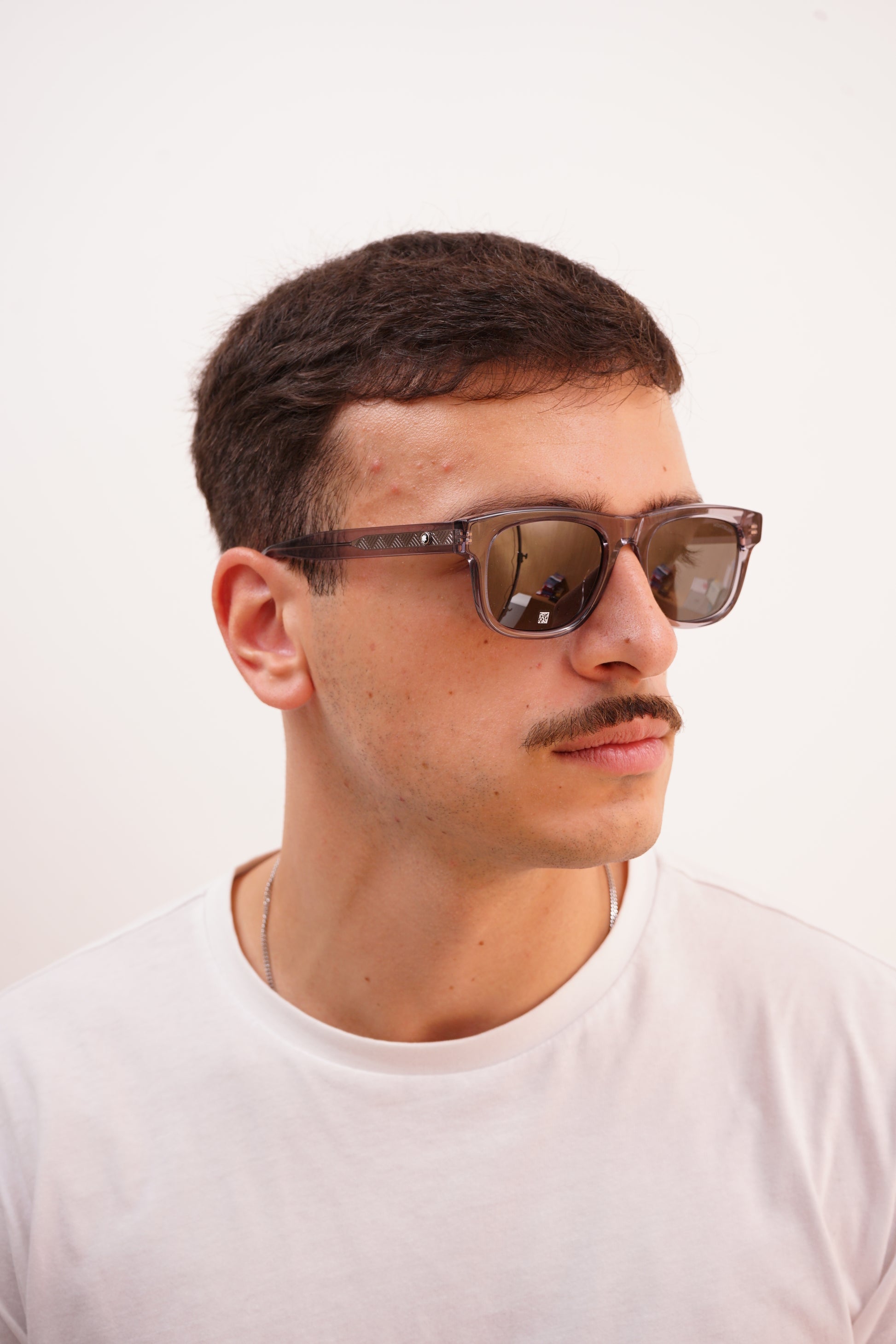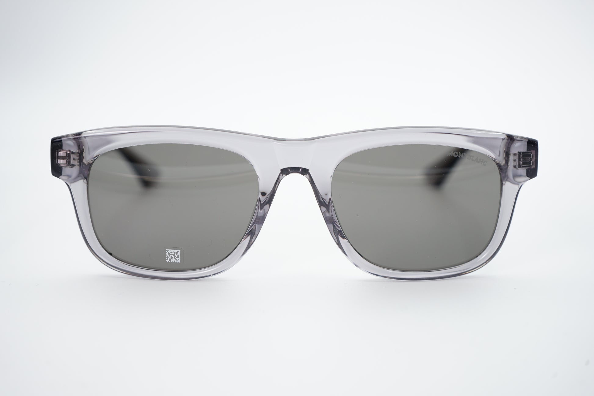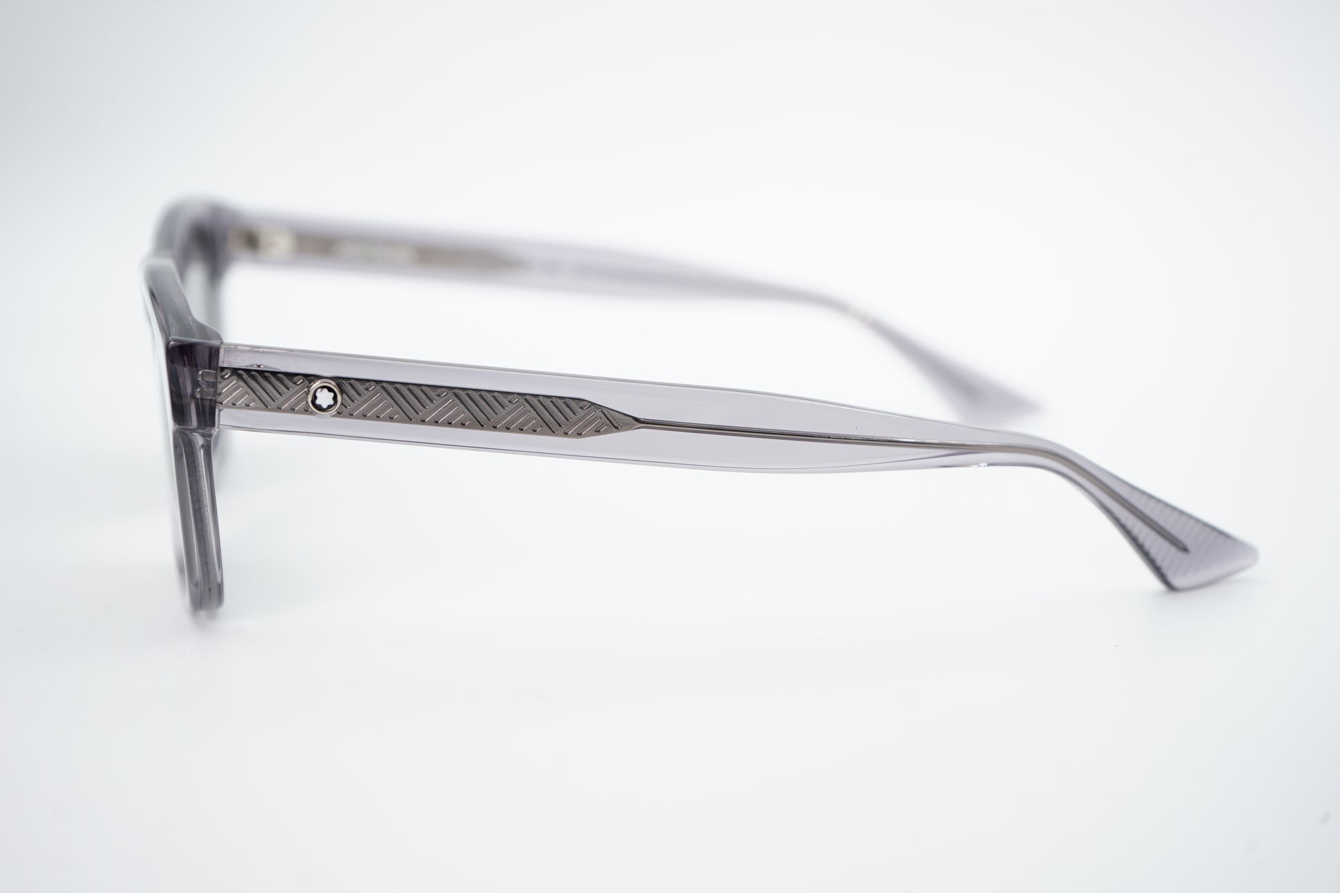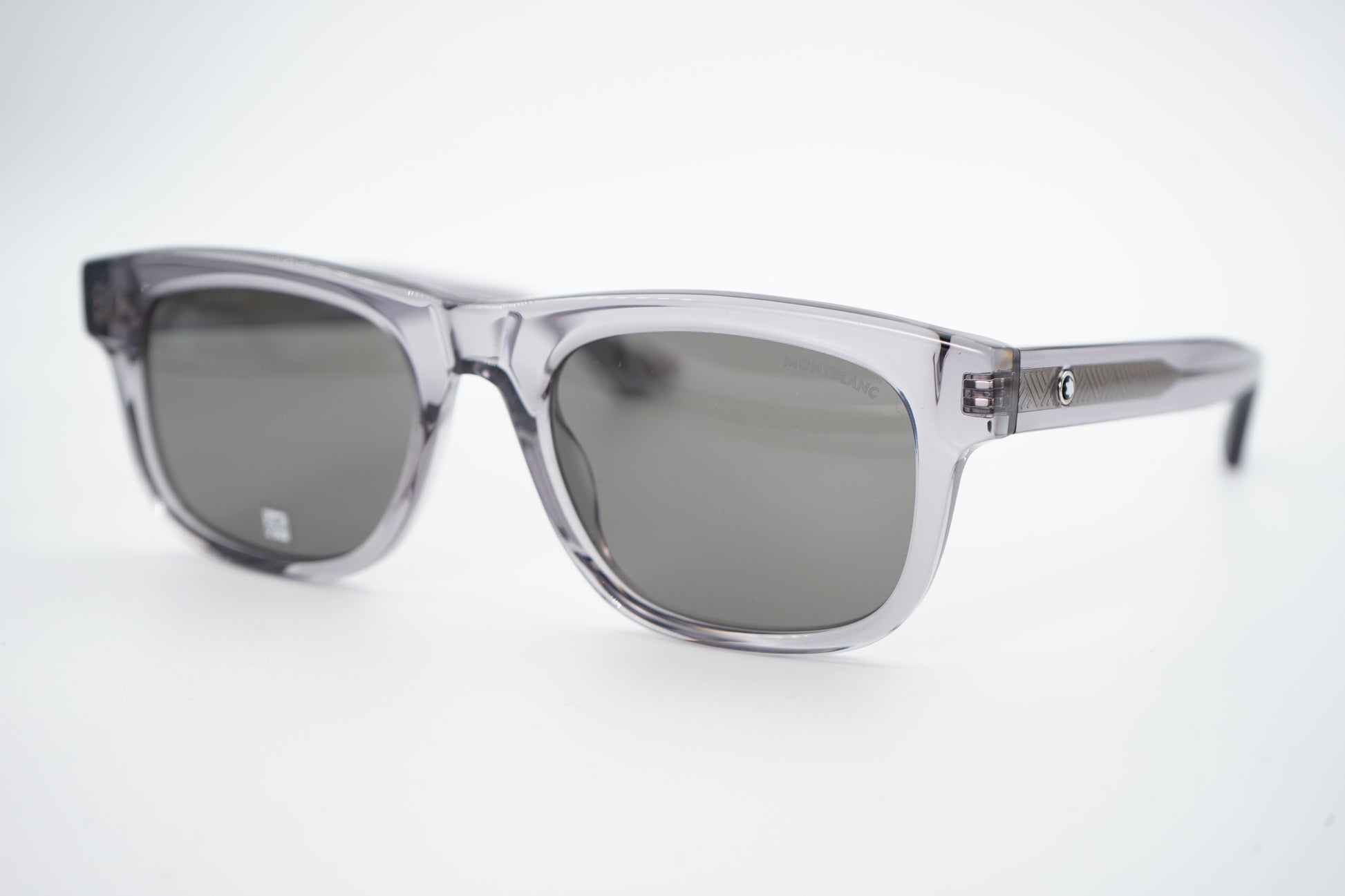 Os óculos de sol Montblanc 0421S 005 distinguem-se pela armação em acetato translúcido cinzento, de linhas retas e elegantes. As hastes exibem o icónico emblema Montblanc, símbolo de precisão e prestígio. As lentes cinzentas proporcionam proteção UV completa e uma visão confortável, combinando estilo contemporâneo com o requinte clássico da marca.