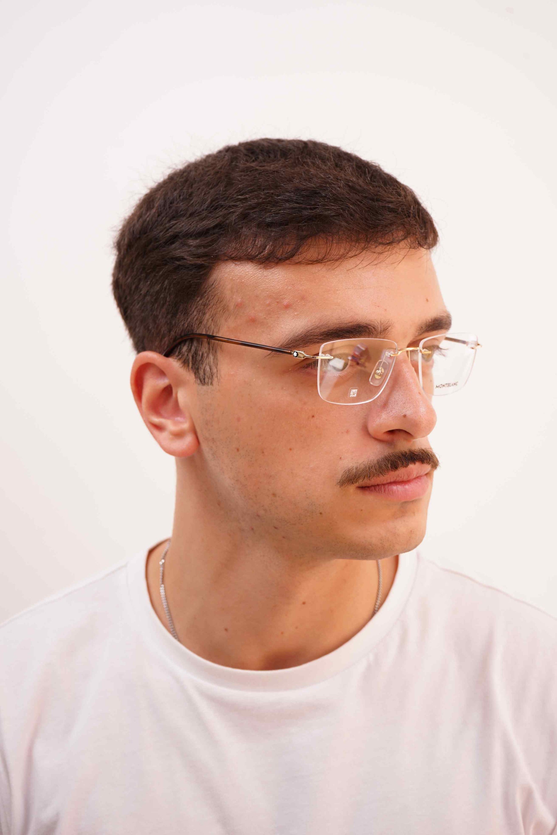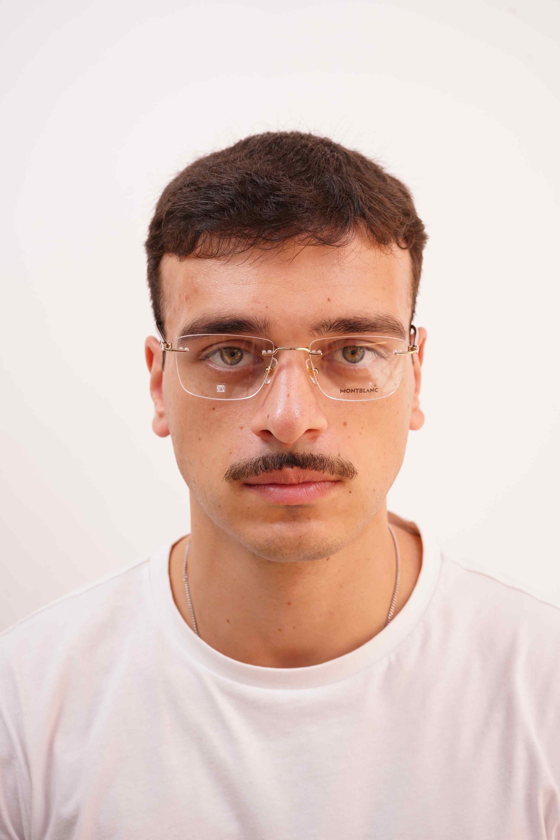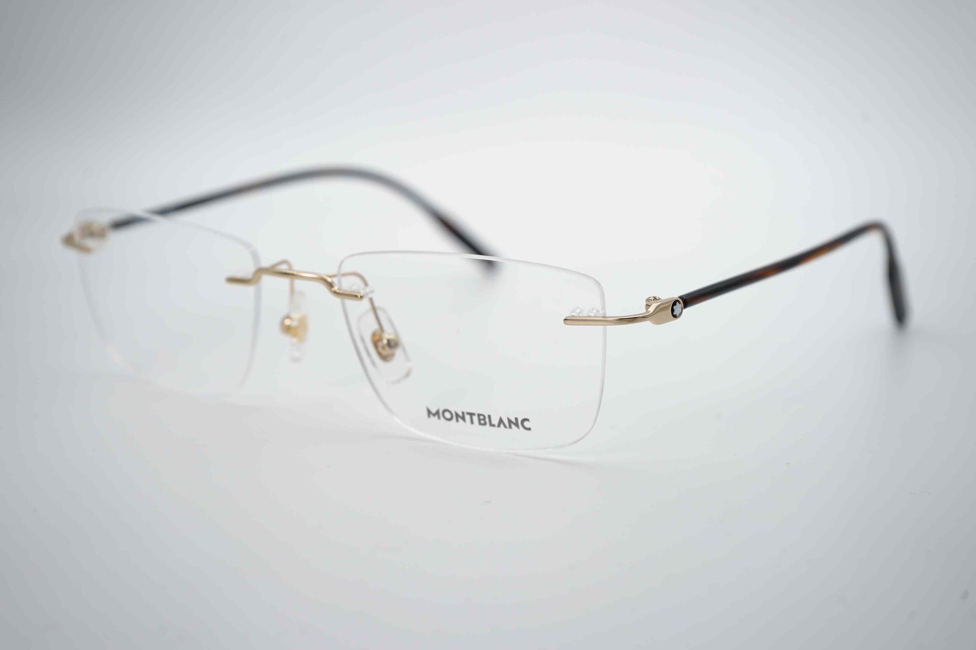 Os óculos Montblanc 0431O 003 apresentam um design sem aro refinado, em titânio dourado leve e resistente. O formato retangular e os acabamentos de precisão conferem elegância discreta, ideal para quem procura uma estética limpa e sofisticada. As hastes finas com detalhe da estrela Montblanc reforçam o caráter premium e intemporal da marca.