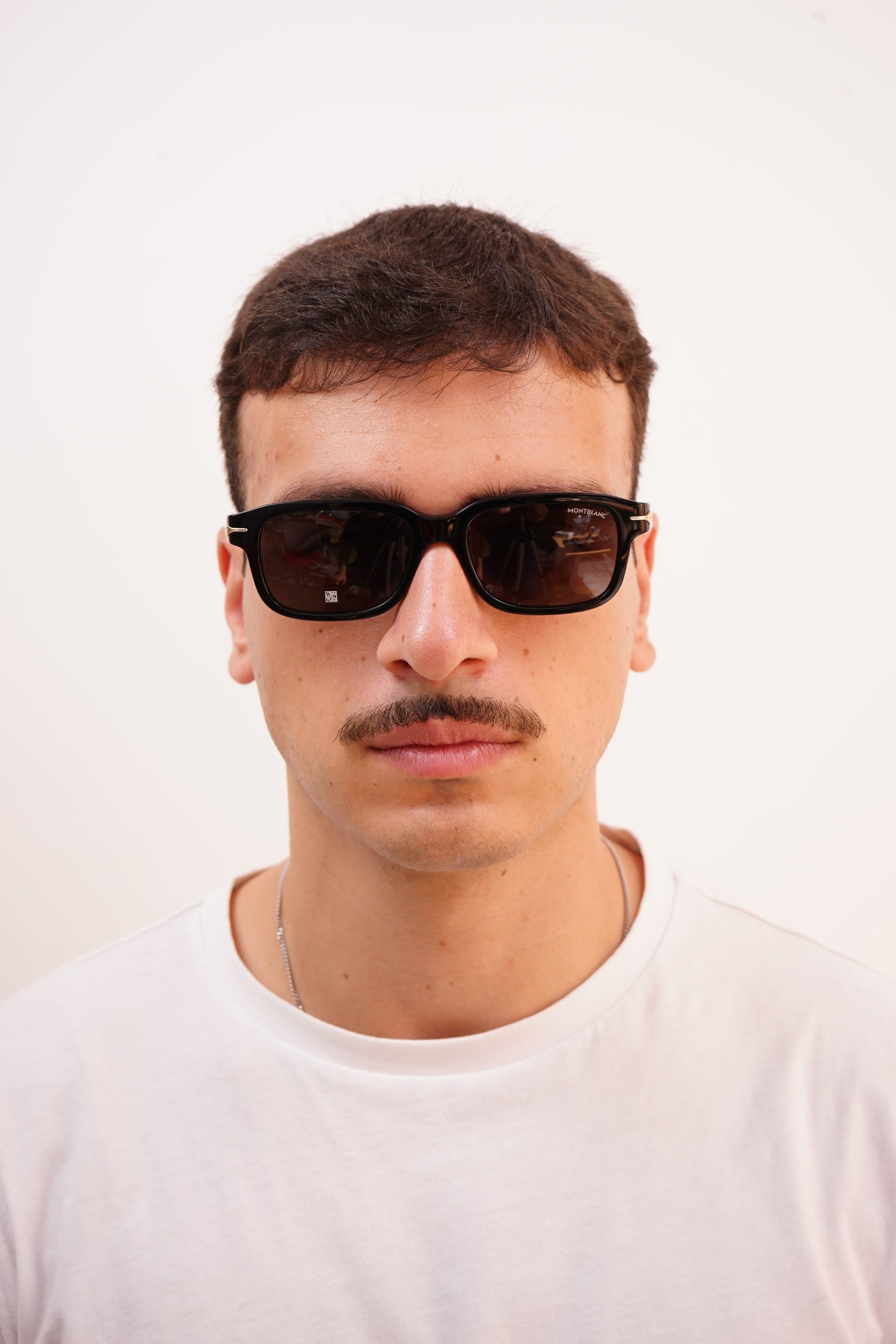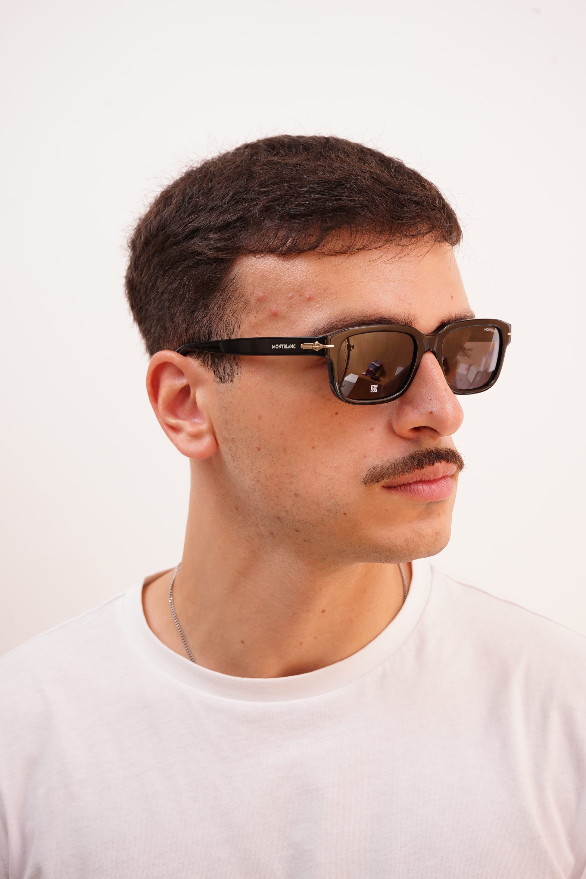 Os óculos de sol Montblanc 0436S 001 destacam-se pela armação em acetato preto com acabamento polido e detalhes dourados inspirados na icónica caneta Meisterstück. As lentes cinza asseguram proteção total contra raios UV e conforto visual superior. O design retangular transmite elegância discreta e carácter sofisticado, refletindo a essência do luxo intemporal da Montblanc.