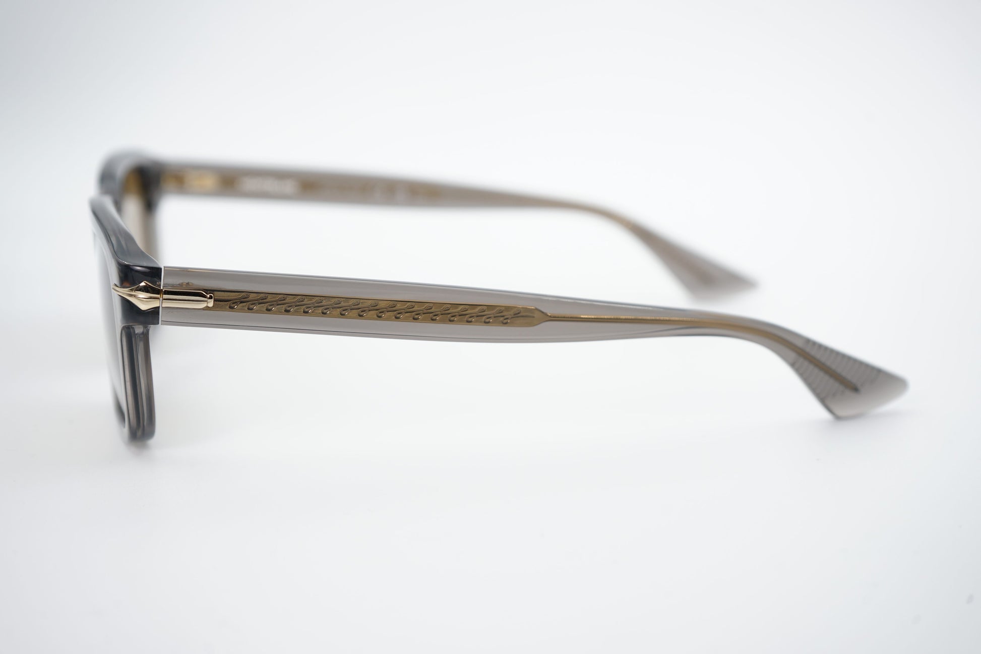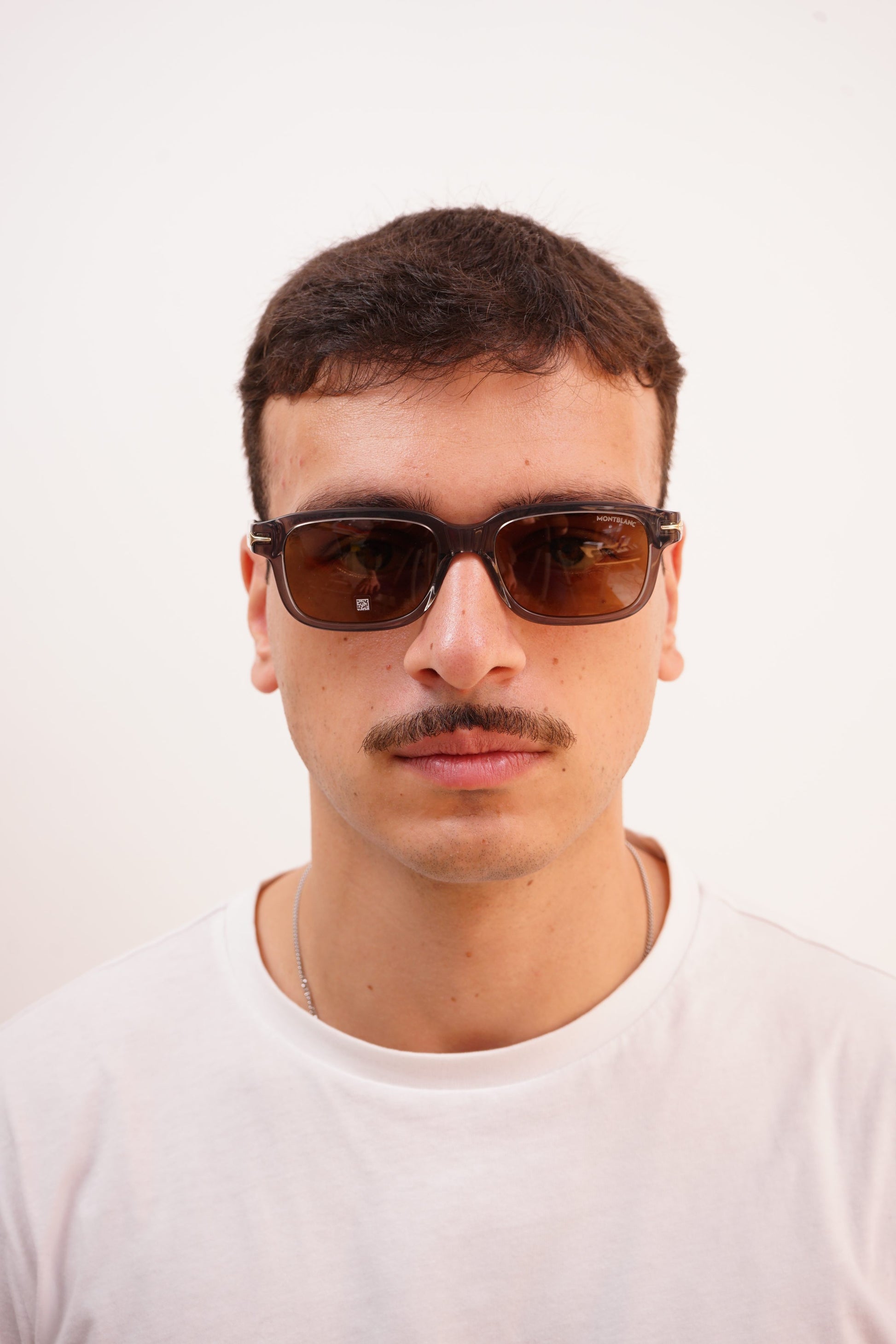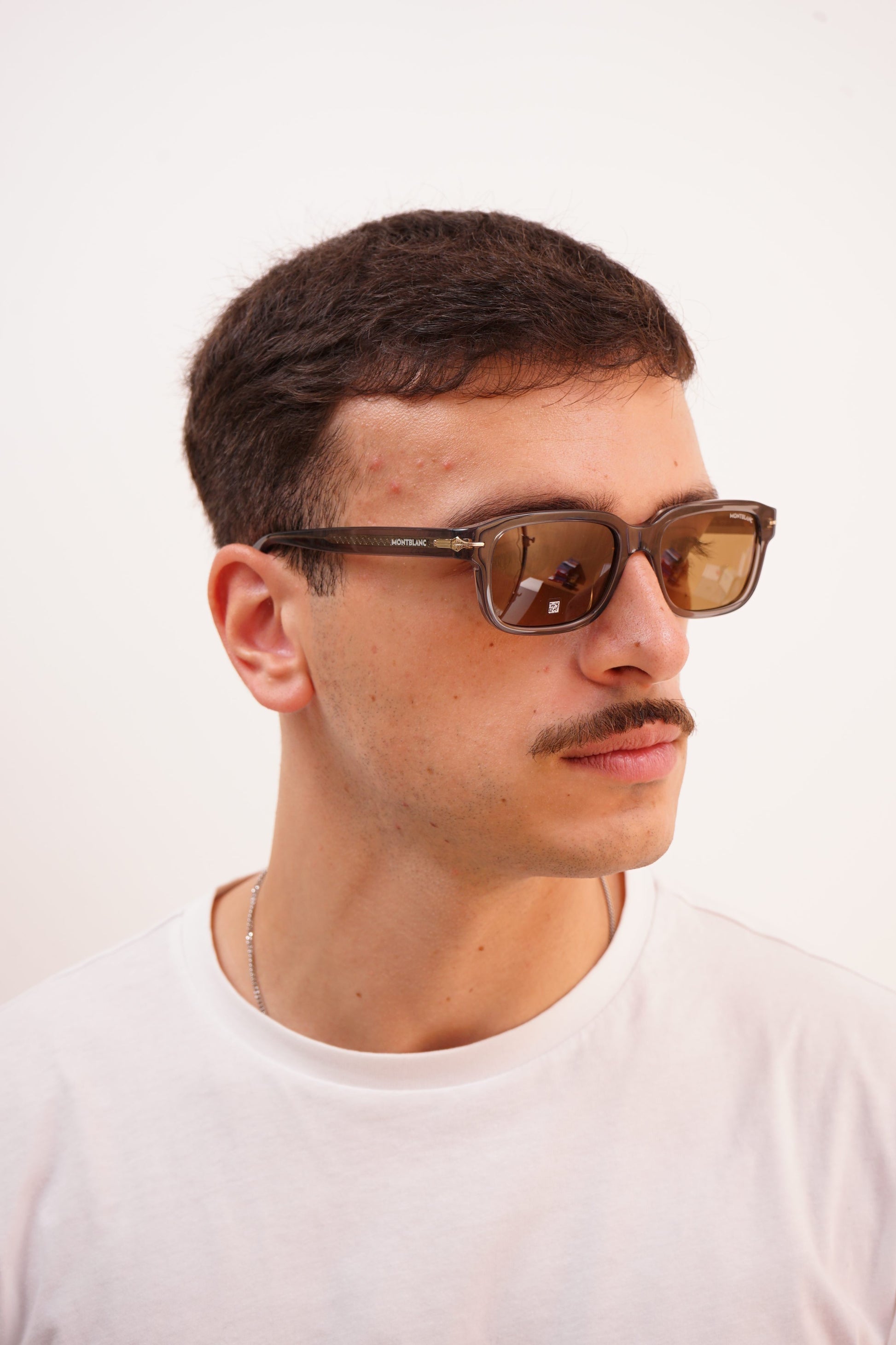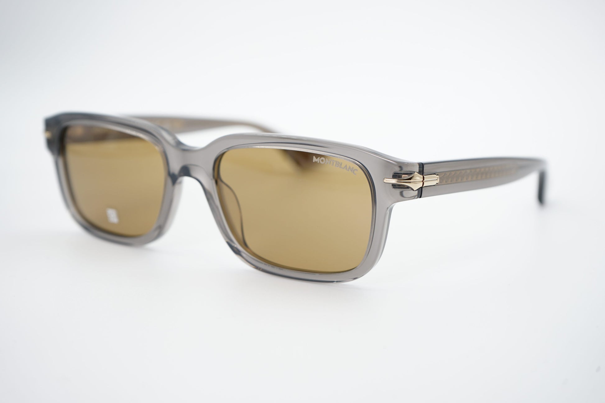 Os óculos de sol Montblanc 0436S 003 distinguem-se pela armação em acetato cinza translúcido com hastes detalhadas e acabamento dourado inspirado na caneta Meisterstück. As lentes douradas proporcionam proteção total contra raios UV e uma visão confortável com estilo refinado. Um modelo moderno e distinto, ideal para quem procura sofisticação e leveza no dia a dia.