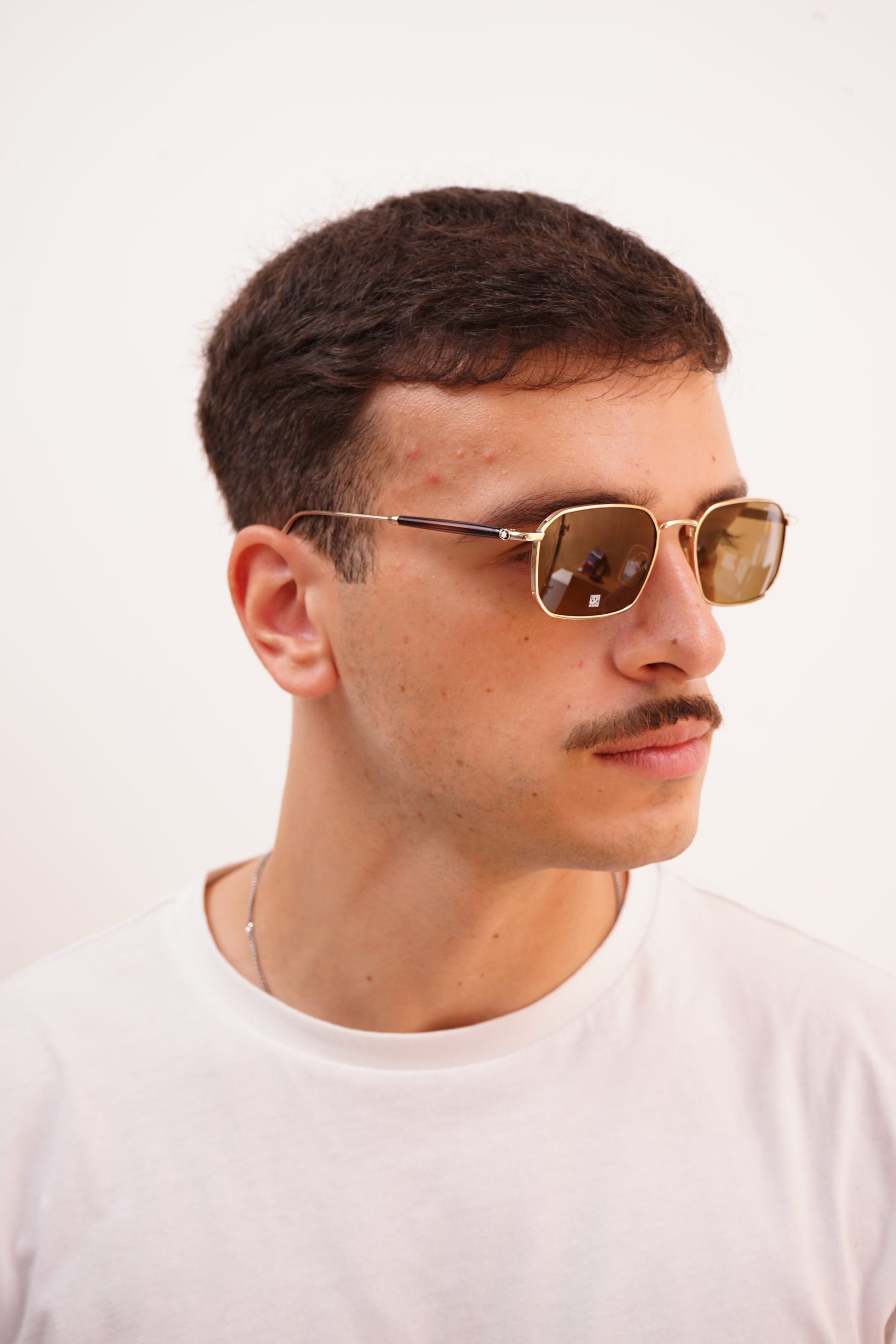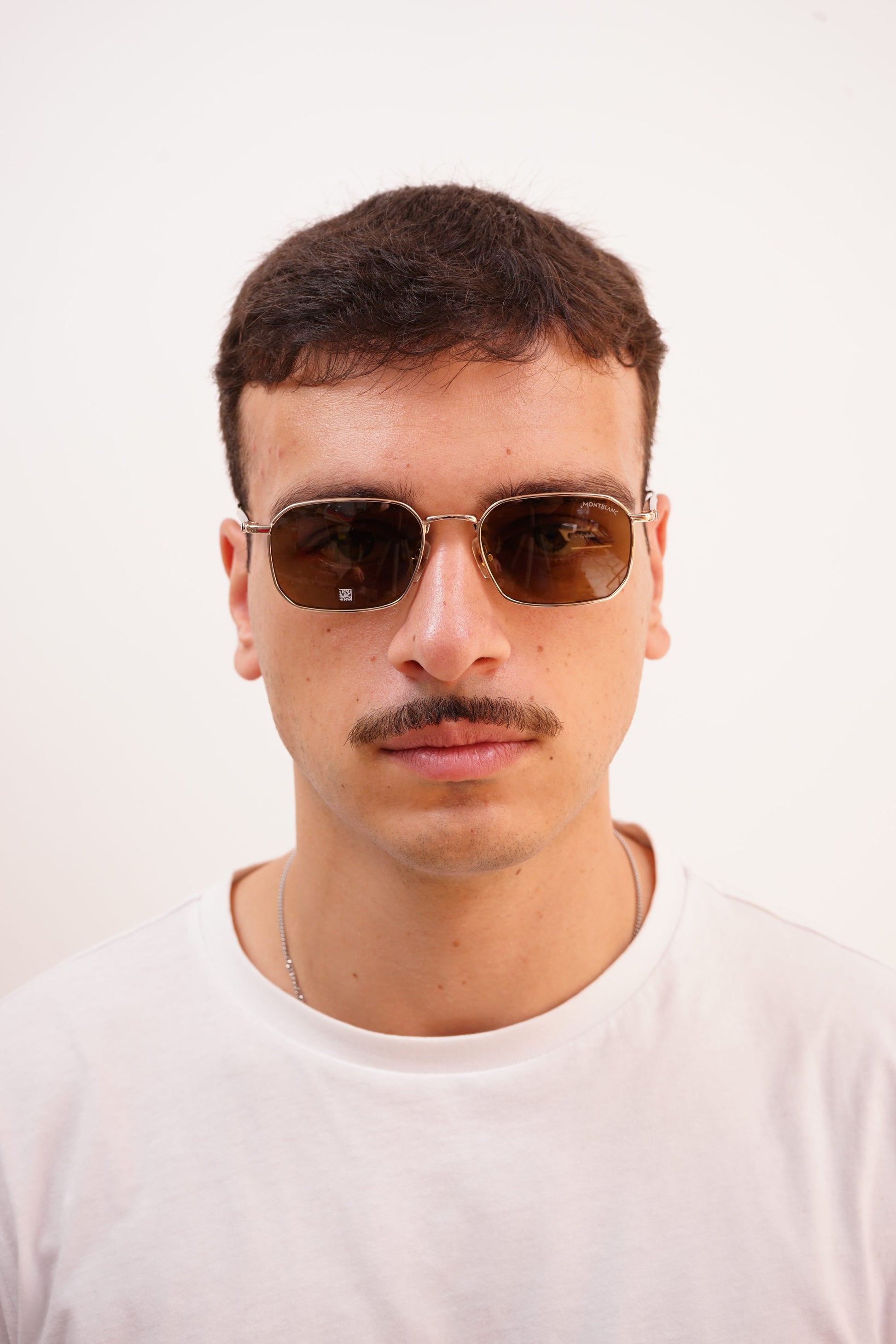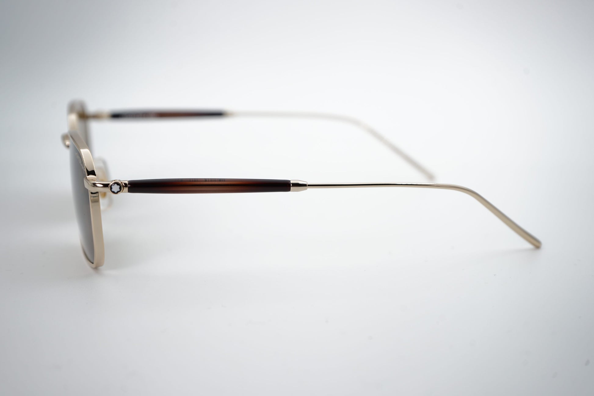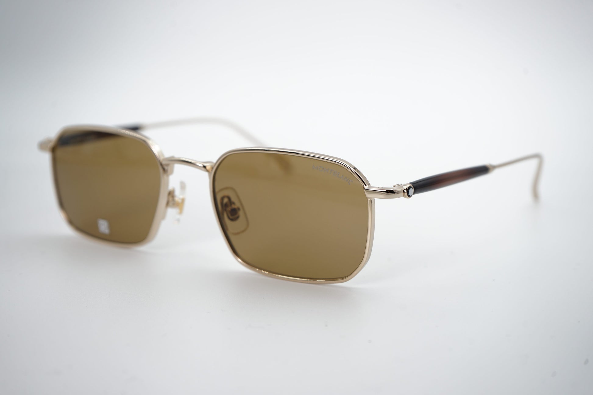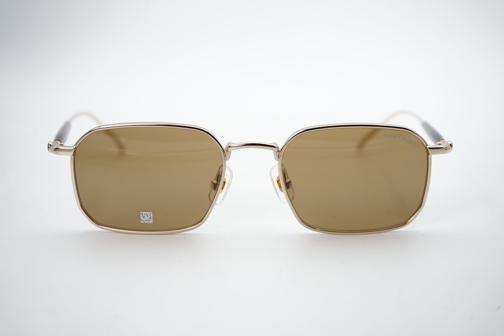 Os óculos de sol Montblanc 0441S 002 distinguem-se pela armação metálica dourada com formato geométrico e hastes finas em preto e dourado. As lentes douradas oferecem proteção total contra raios UV e uma visão confortável, realçando o visual com um toque de luxo discreto. Um modelo refinado que expressa o prestígio e a precisão artesanal da Montblanc.