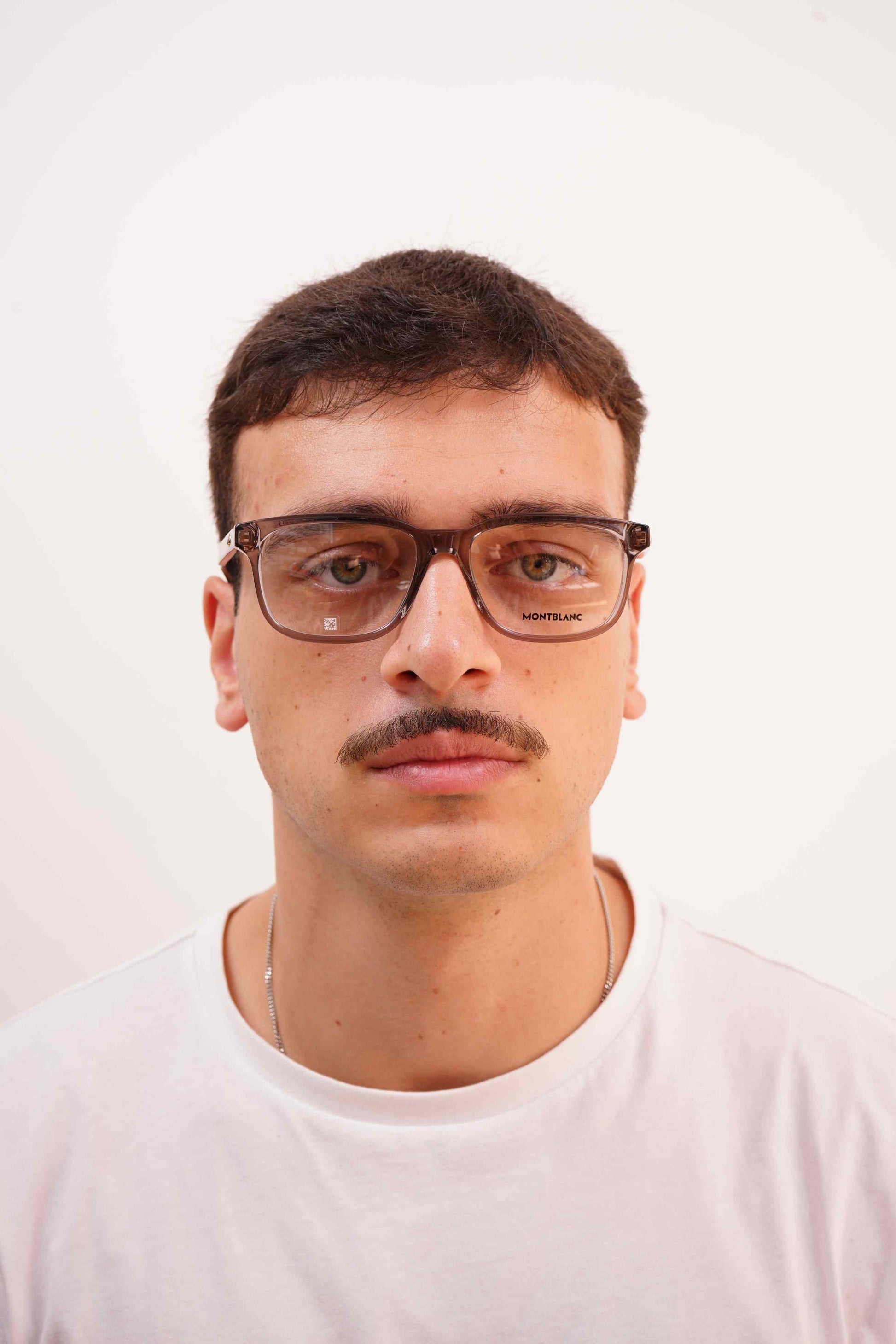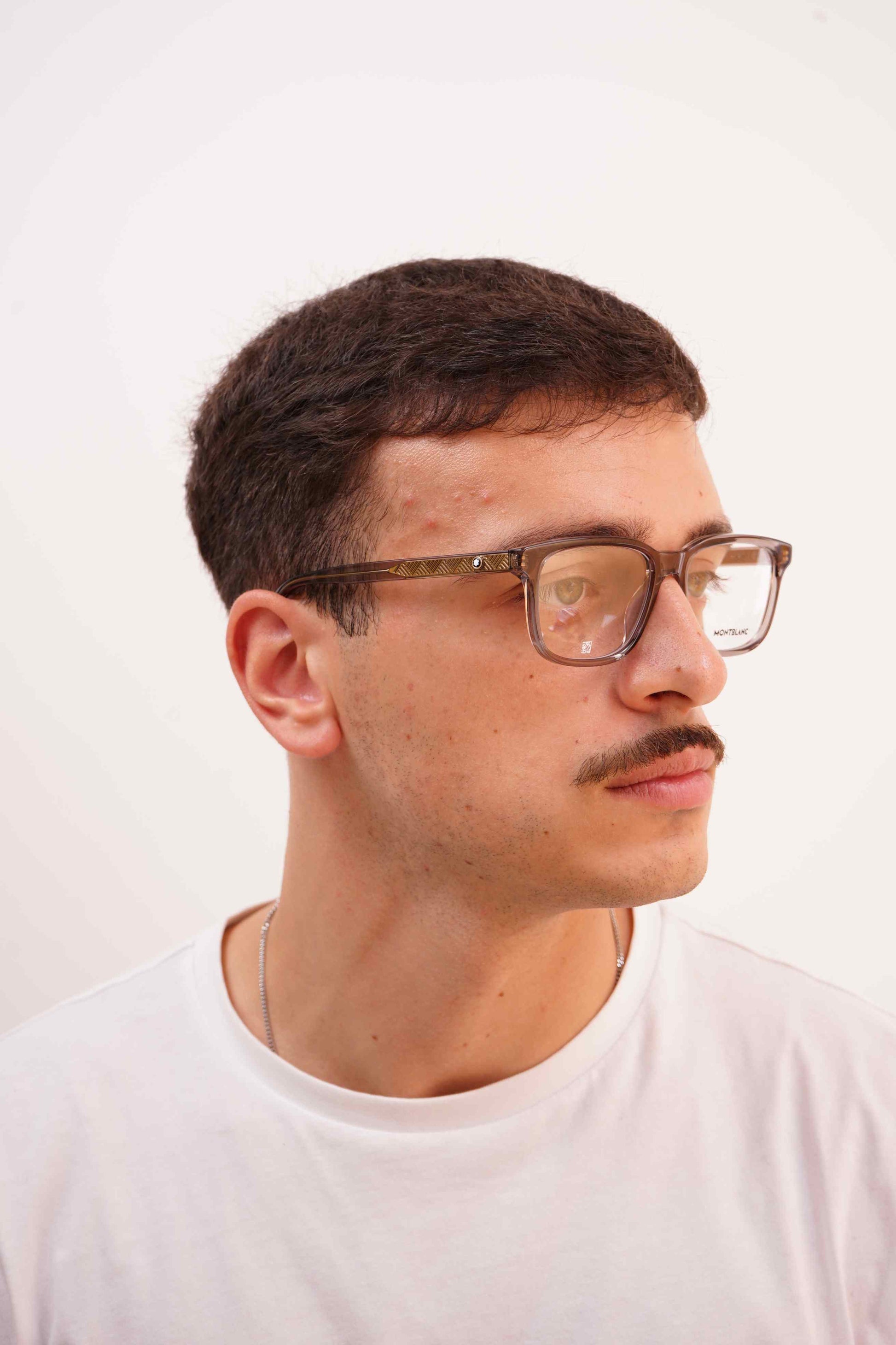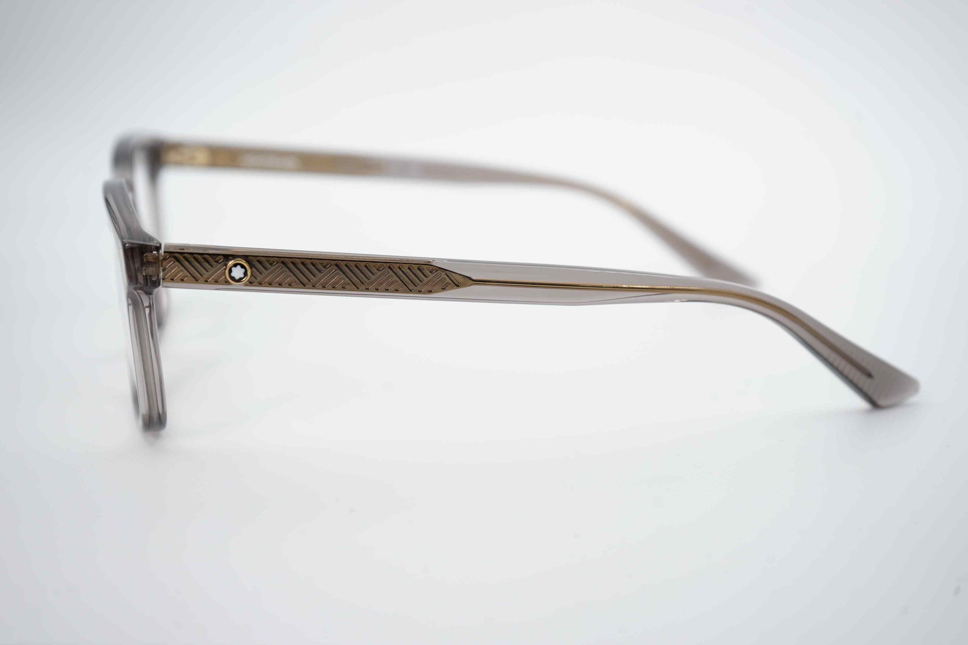 Os óculos Montblanc 0452O 004 distinguem-se pela sua armação em acetato translúcido cinza, com hastes em metal texturizado dourado que reforçam o caráter sofisticado da peça. O formato retangular suavizado oferece equilíbrio visual e conforto prolongado, adaptando-se facilmente a diferentes traços faciais. O logótipo Montblanc nas hastes evidencia a assinatura de luxo e precisão da marca.