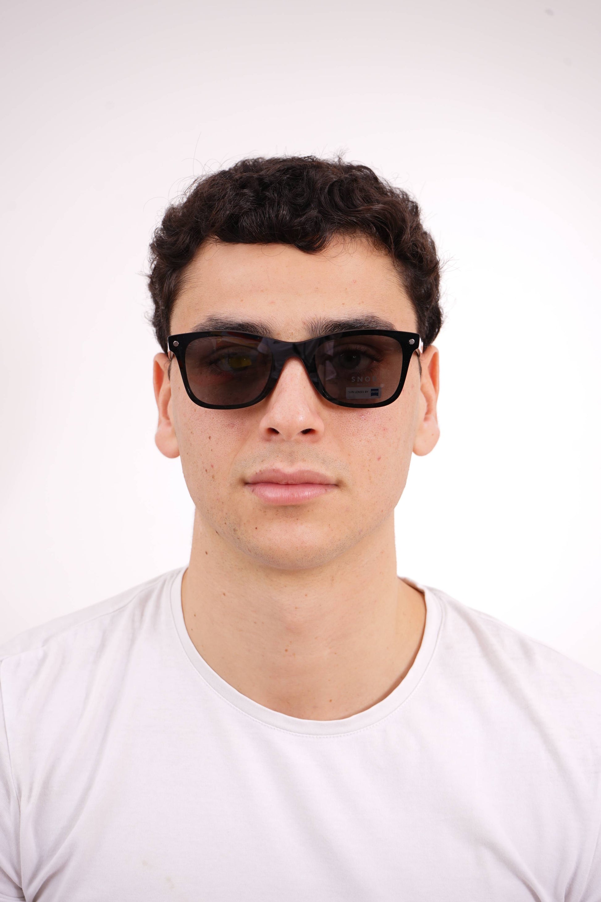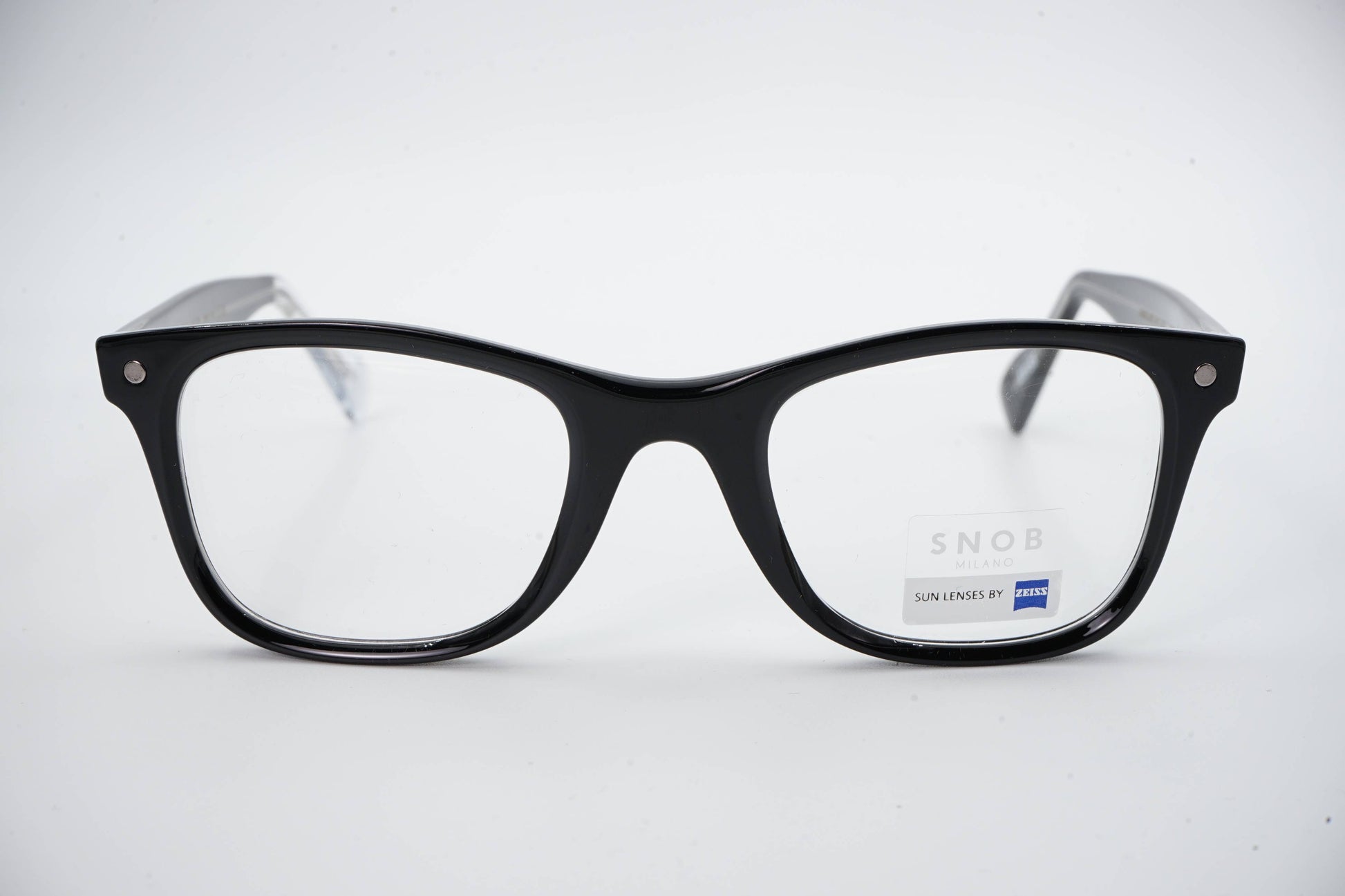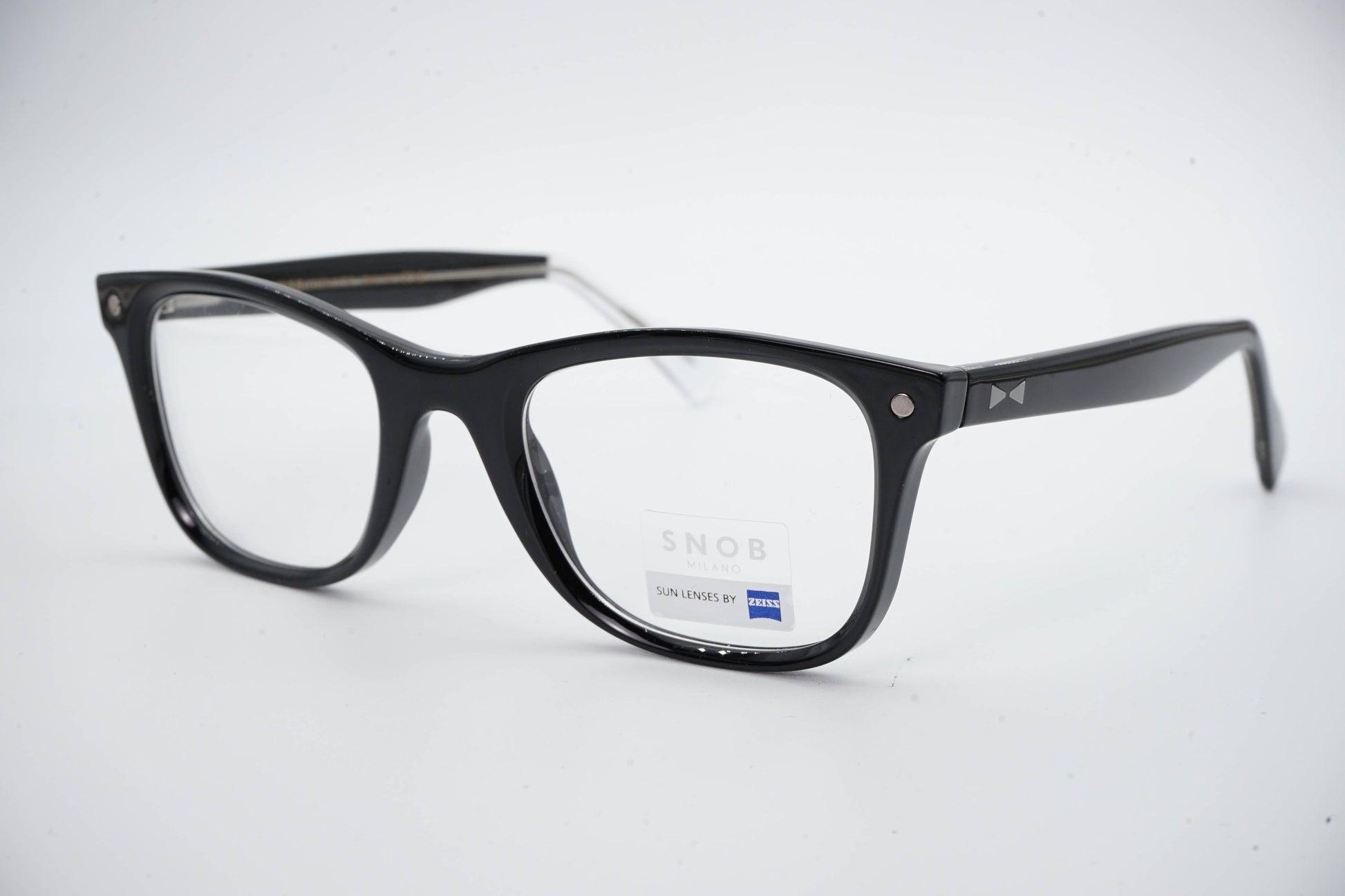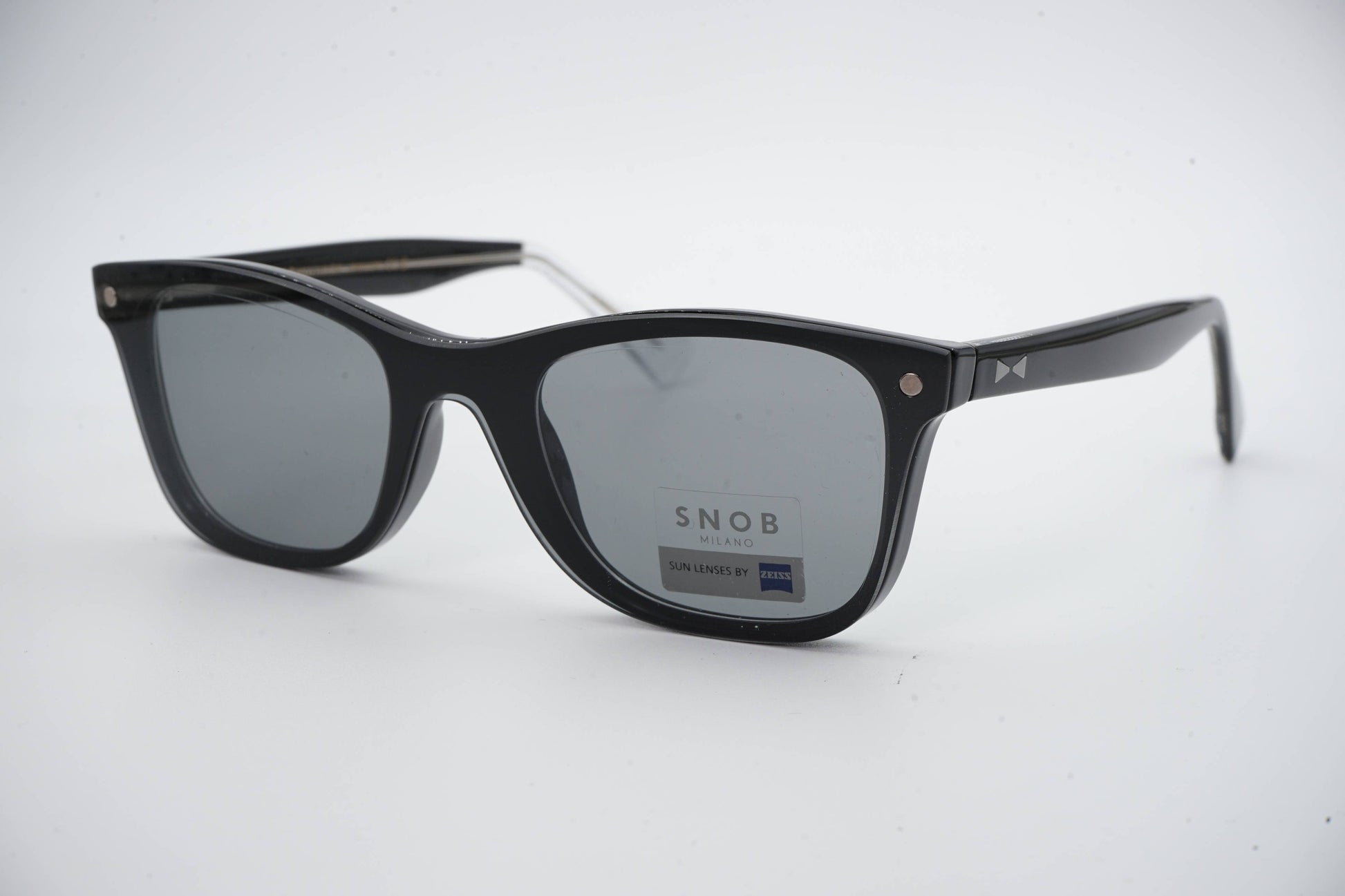O Snob Milano Americano SNV176 C01 apresenta uma armação em acetato preto com linhas retas e estrutura clássica “wayfarer”, garantindo presença firme e versatilidade no uso diário. O desenho frontal é limpo, sólido e equilibrado, com hastes discretas que incluem o emblema geométrico da marca.