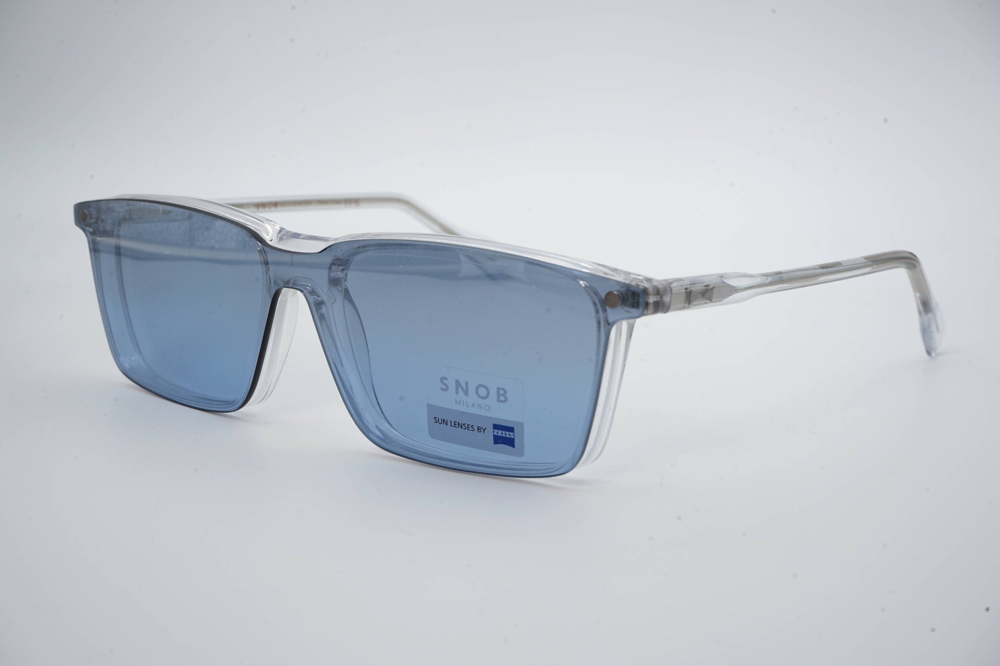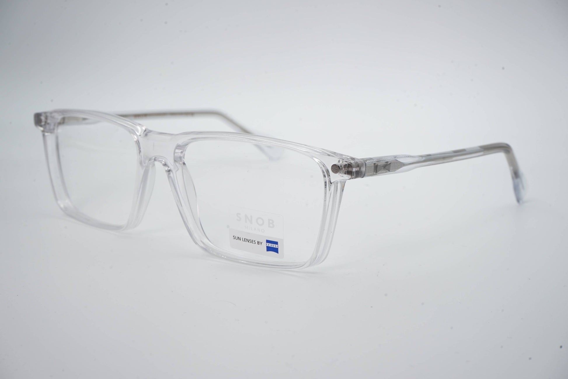 O Snob Milano Bellalì SNV213 C06 distingue-se pelo acetato transparente com acabamento cristal, garantindo um visual leve, moderno e altamente versátil. A estrutura retangular oferece estabilidade e conforto, ideal para uso prolongado. O clip-on solar magnético adapta o modelo optical a óculos de sol em segundos, mantendo um encaixe seguro. As lentes Zeiss asseguram proteção e nitidez superior, tornando este modelo uma solução prática e elegante para o dia a dia.