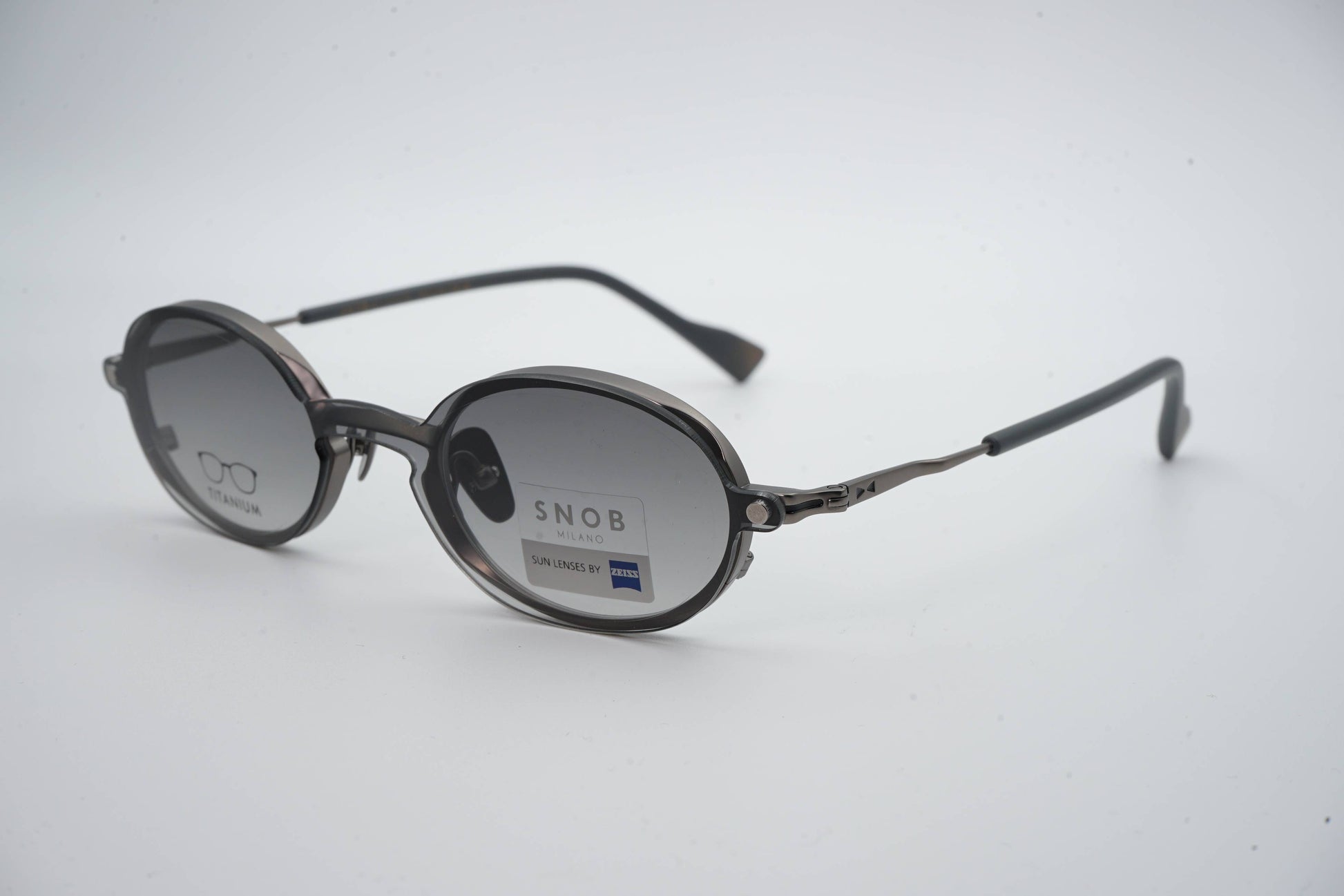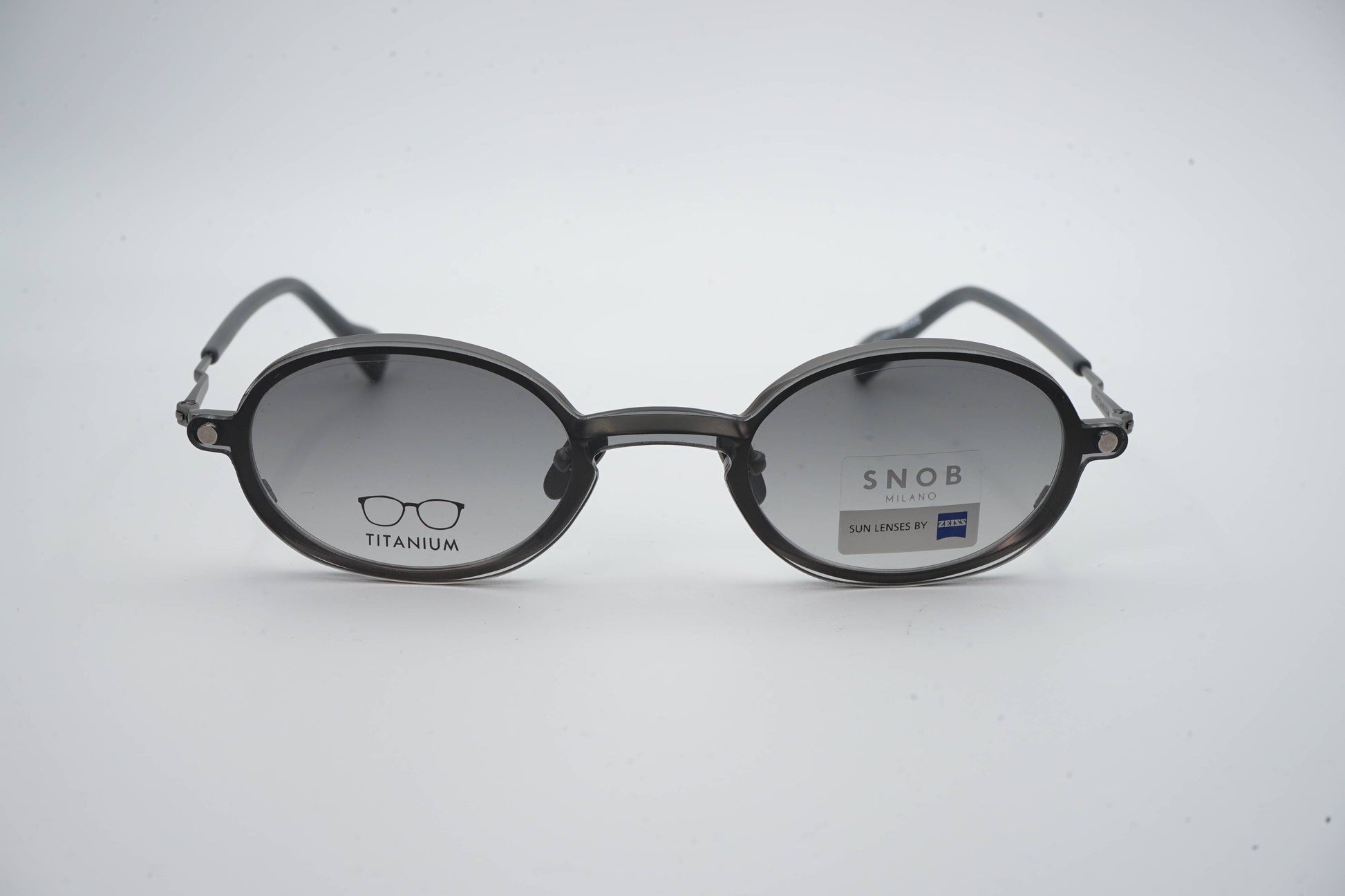 O Snob Milano Indy SNV203T C01 apresenta um design oval compacto, com uma frente metálica em tom grafite que transmite sobriedade, modernidade e uma estética técnica bem definida. O formato equilibrado adapta-se facilmente a rostos mais delicados, enquanto a construção em titânio assegura leveza extrema, elevada resistência e conforto contínuo no uso diário.
