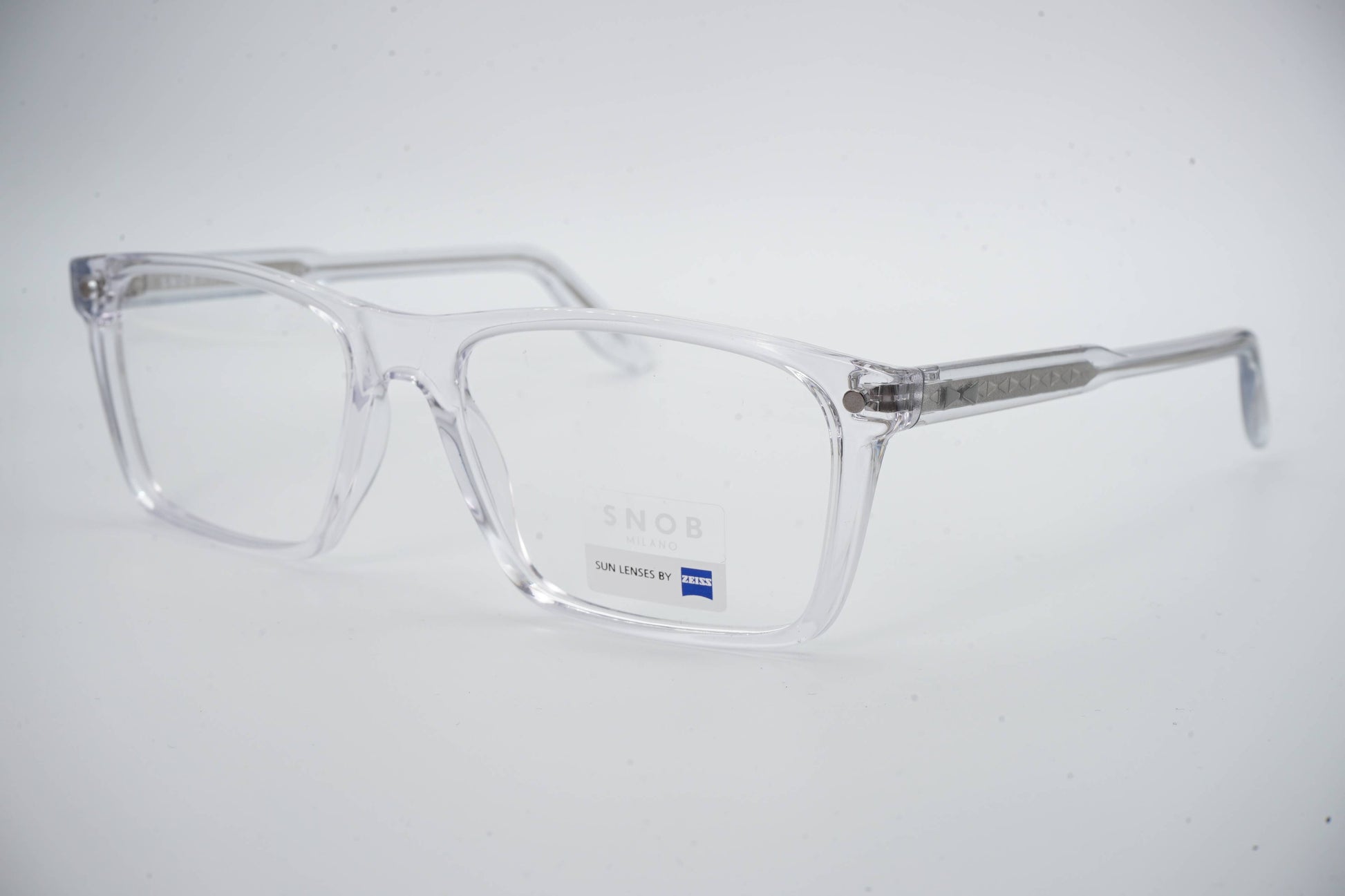 O Snob Milano Max Metal SNV93CM C12 combina um design retangular contemporâneo com uma frente em acetato cristal e estrutura metálica interna visível, criando uma estética técnica, limpa e diferenciadora. A transparência da armação evidencia a engenharia do modelo, transmitindo modernidade e precisão sem excessos visuais.