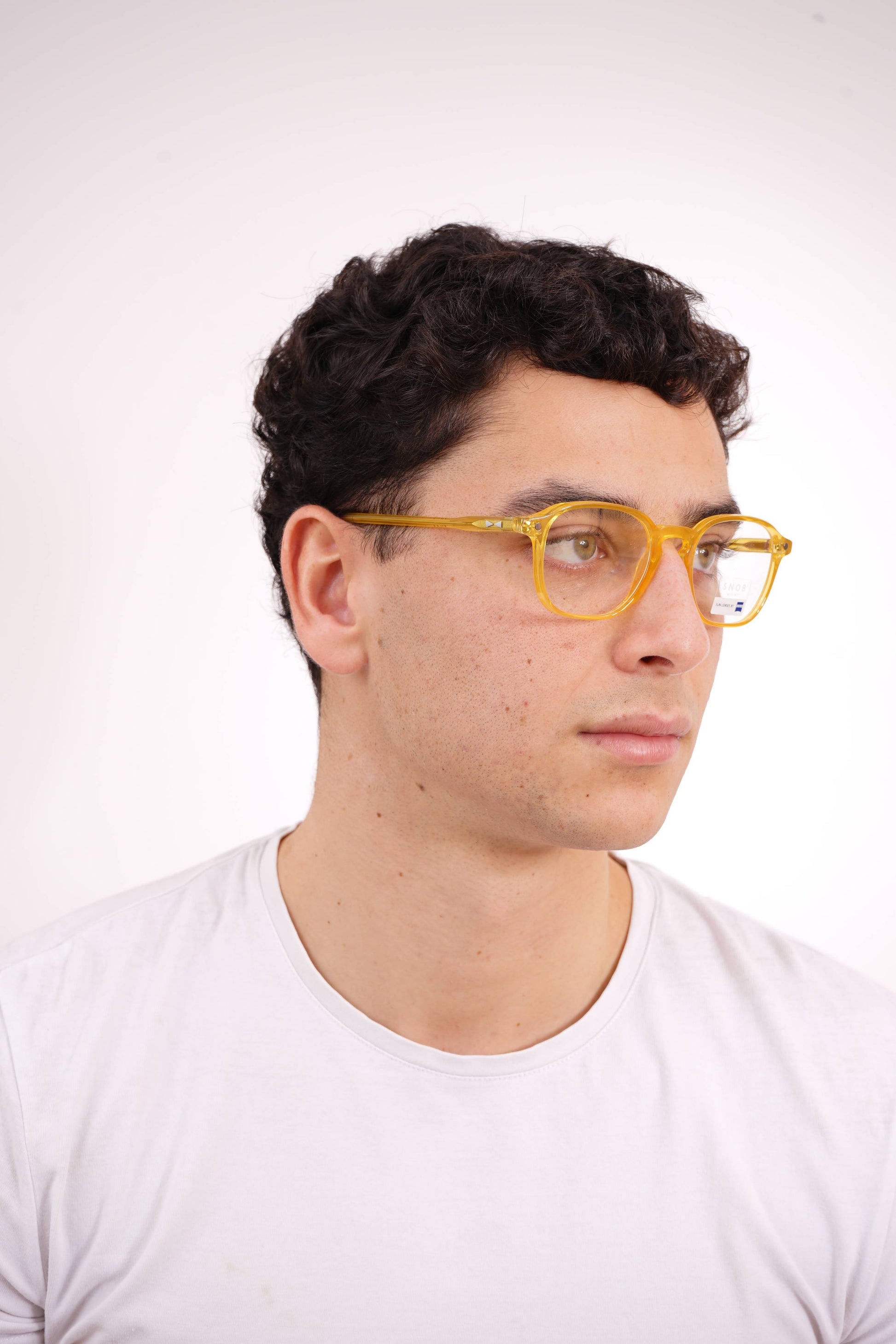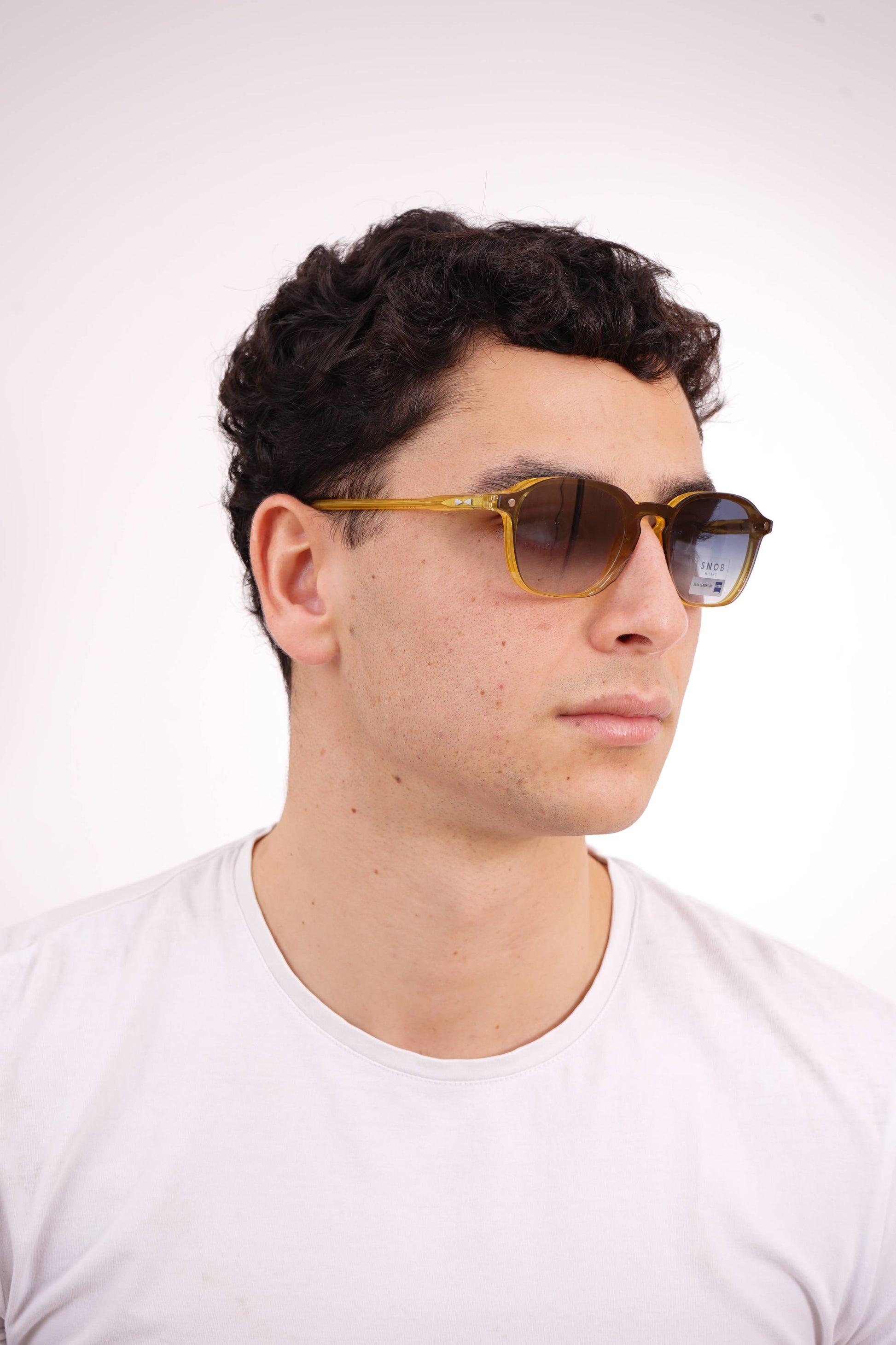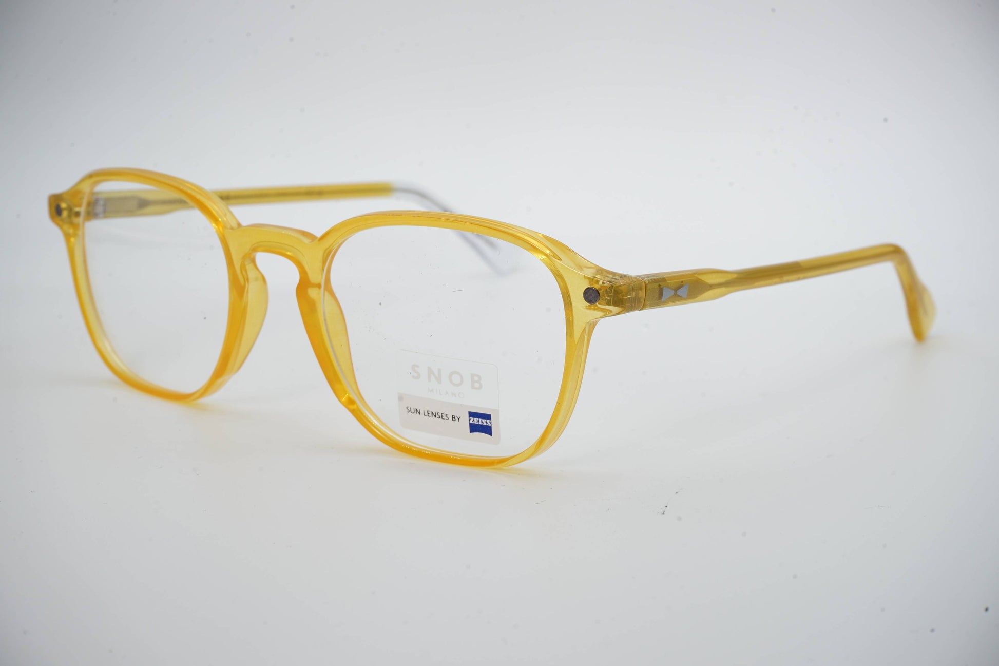 O Snob Milano Pagoda SNV243 C06 apresenta um design leve, expressivo e contemporâneo, marcado por um acetato amarelo translúcido que maximiza luminosidade e conforto. A armação destaca-se pela ergonomia bem calibrada e pelo equilíbrio entre estrutura e leveza. O clip-on solar magnético, em lentes Zeiss degradê azul, transforma o modelo optical em óculos de sol num gesto simples, garantindo proteção visual superior e um impacto estético único.