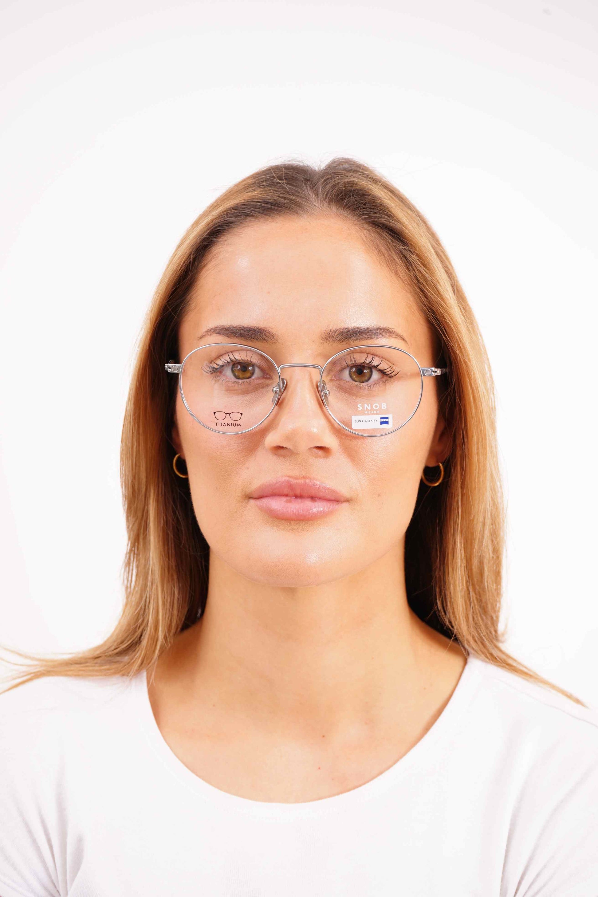 O modelo Snob Milano Special One SNV150T C02 distingue-se pelo conceito híbrido: uma armação em titânio ultraleve, de linhas arredondadas, combinada com um clip-on solar da ZEISS, garantindo proteção e qualidade óptica de topo. A frente metálica apresenta um acabamento elegante em prata, enquanto o clip em tom castanho adiciona versatilidade imediata — de óculos transparentes para óculos de sol em poucos segundos. As hastes finas reforçam o conforto e mantêm o visual premium característico da Snob Milano. Solução prática, duradoura e de elevado desempenho para quem procura funcionalidade sem abdicar de estilo.