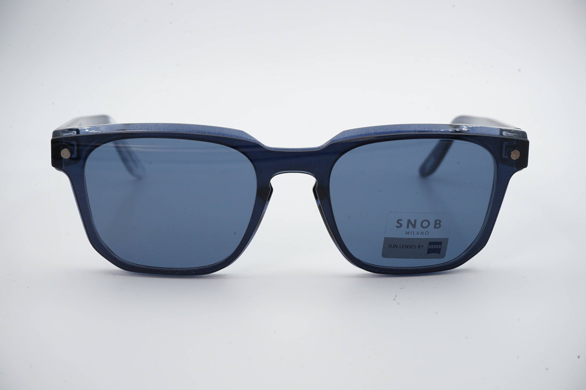 O Snob Milano William’s SNV228 C04 combina estrutura robusta com estética moderna. A armação em acetato azul translúcido apresenta linhas retas e front mais largo, garantindo estabilidade e presença visual. O clip-on solar magnético adapta o modelo optical para uso exterior em segundos, mantendo um encaixe firme e prático. As lentes Zeiss asseguram proteção solar de alta precisão, proporcionando conforto e nitidez. Um modelo pensado para quem valoriza design sólido, versatilidade e performance diária.