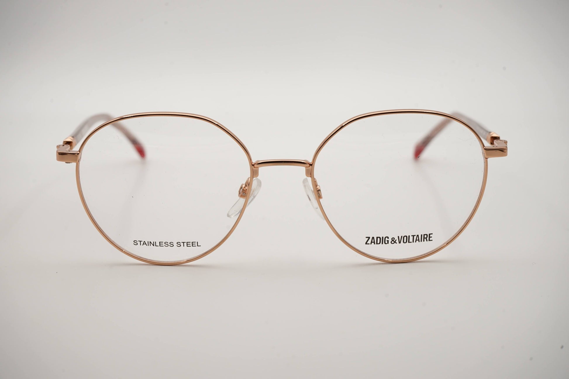Os óculos Zadig & Voltaire 351 08FC são a escolha ideal para quem procura uma armação feminina com personalidade e leveza. O tom rosa dourado confere um visual moderno e delicado, enquanto o formato redondo suaviza os traços do rosto. As hastes finas em metal com detalhes da marca reforçam o estilo elegante e contemporâneo. Perfeitos para o dia a dia ou para um look mais sofisticado. Disponíveis na JP OPTICA com envio rápido e stock limitado.