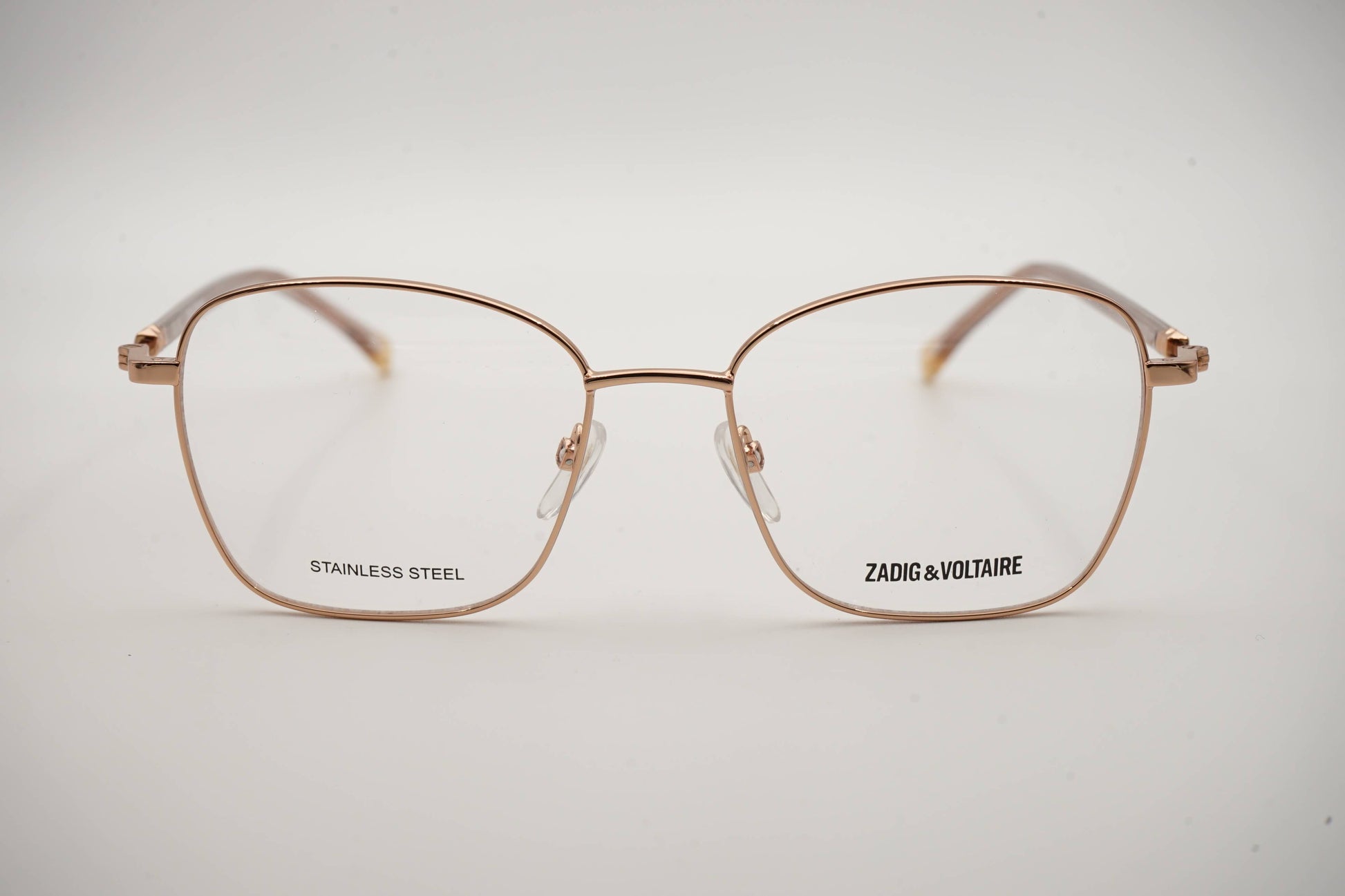 Os Zadig & Voltaire 352 8FCY são óculos de sol femininos que combinam uma estrutura moderna com um toque subtil de metal dourado rosa. A sua armação elegante e ligeiramente arrebitada nas pontas reflete a estética irreverente da marca francesa, perfeita para mulheres que procuram estilo e originalidade.
